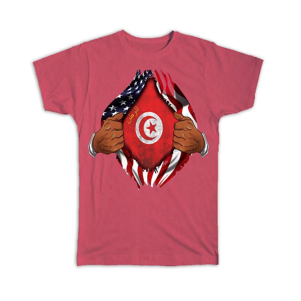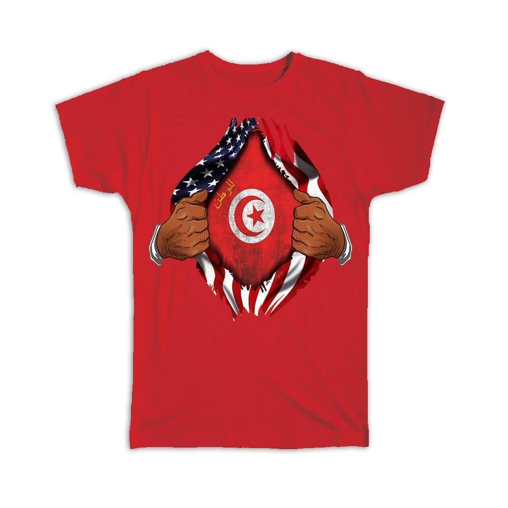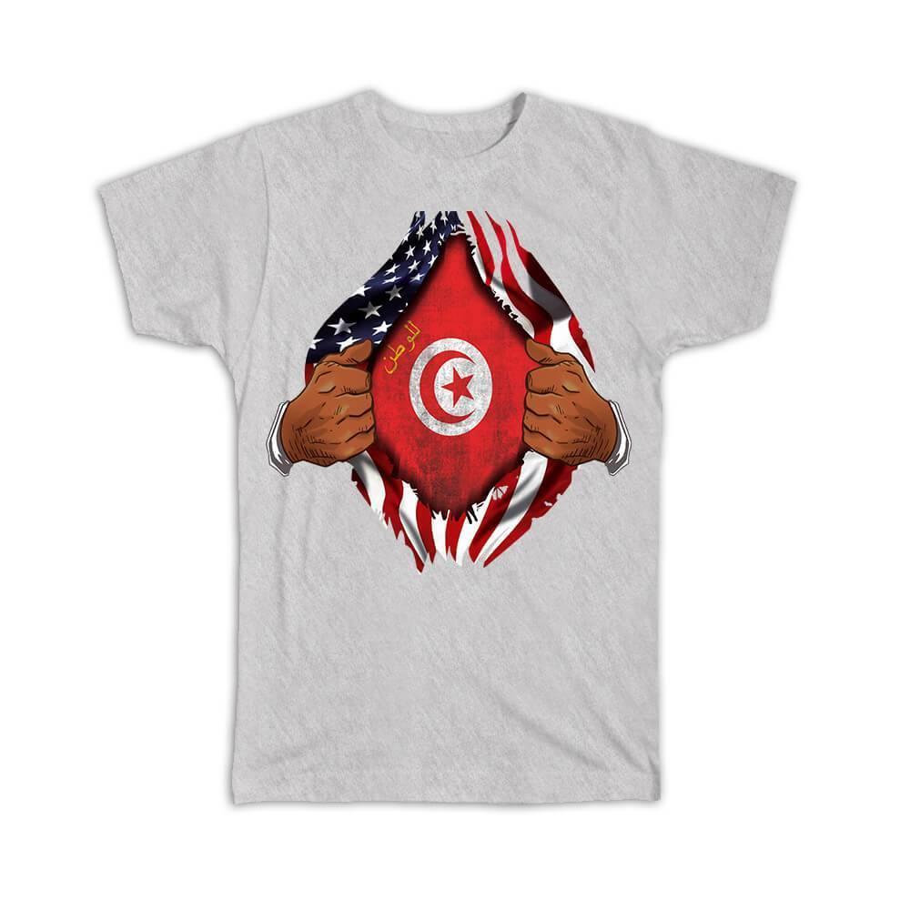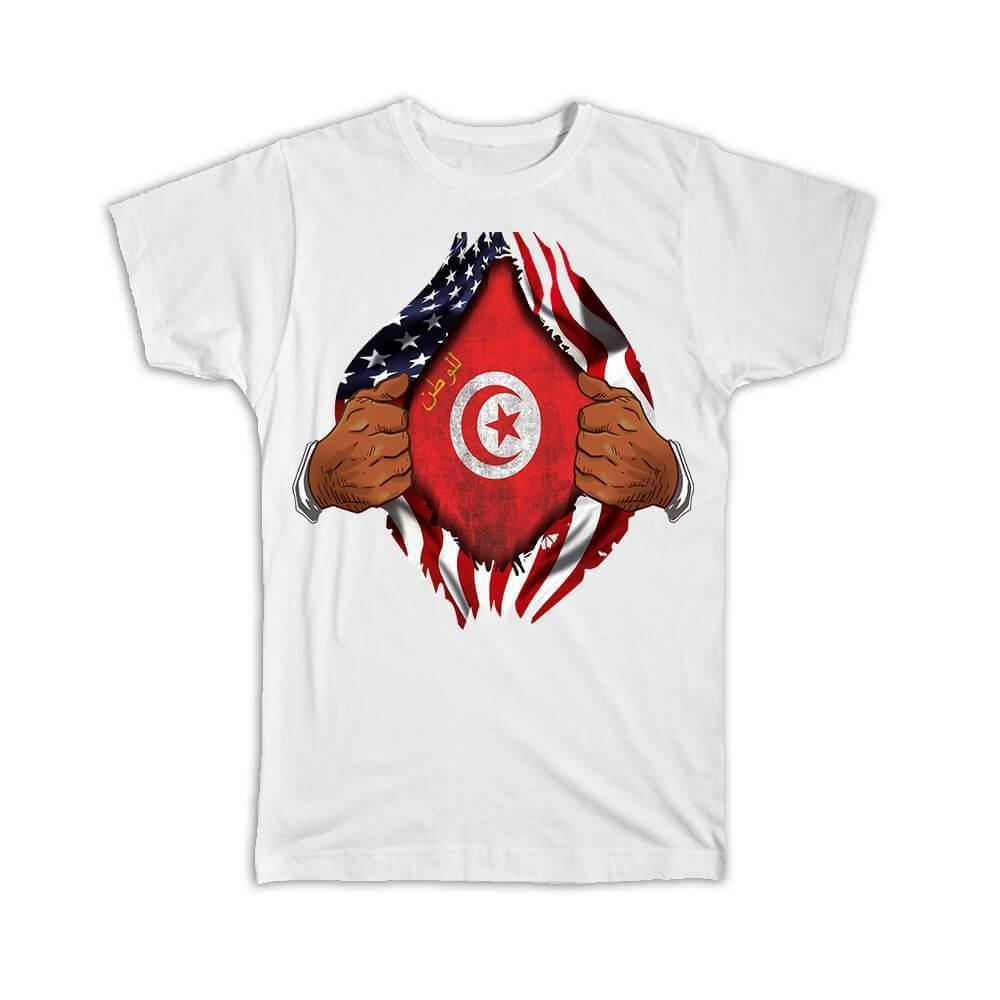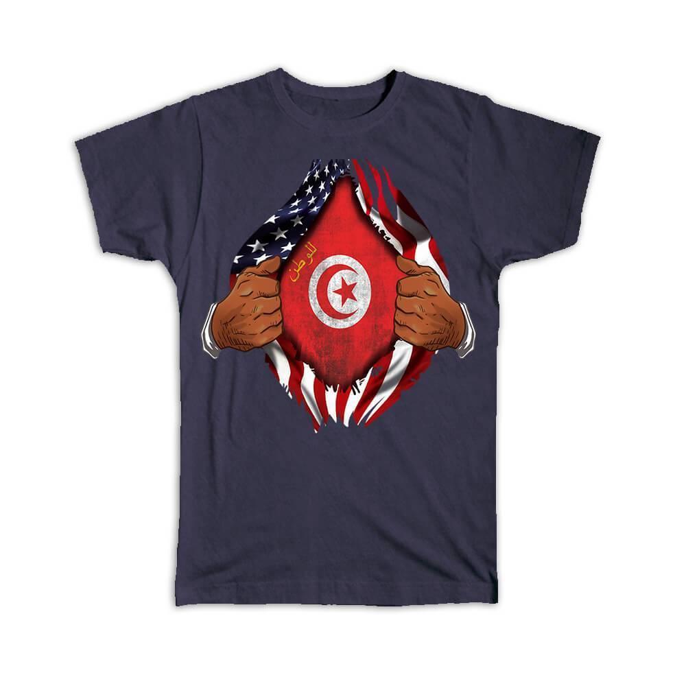 Tunisia : Gift T-Shirt Flag USA American Chest Tunisian Expat Country
