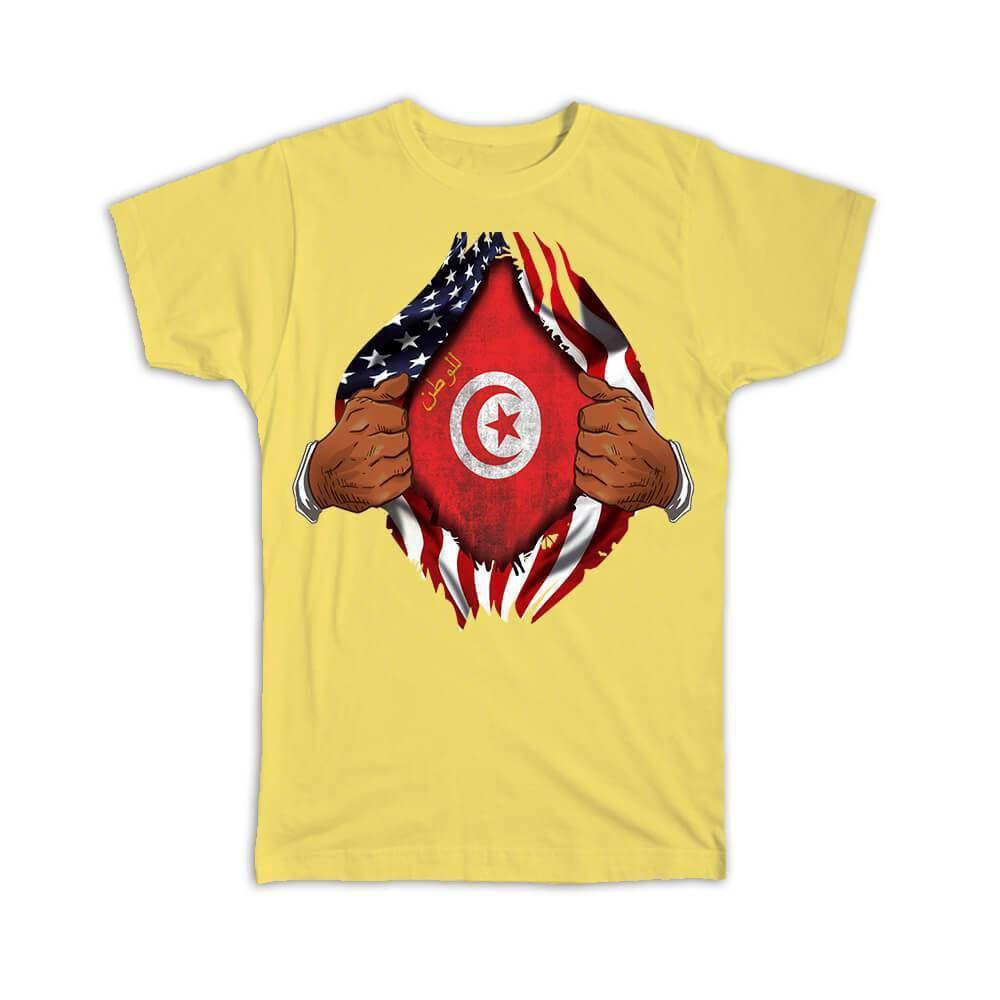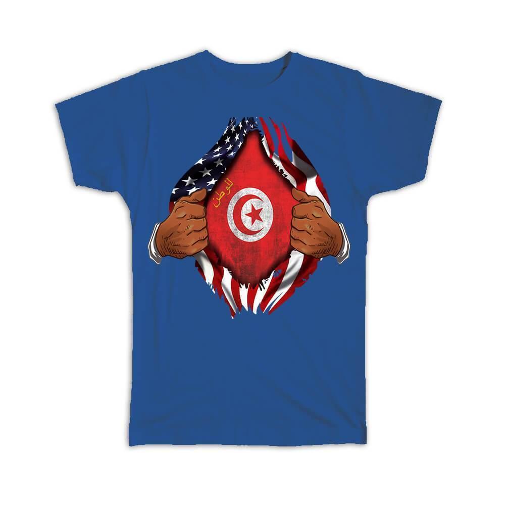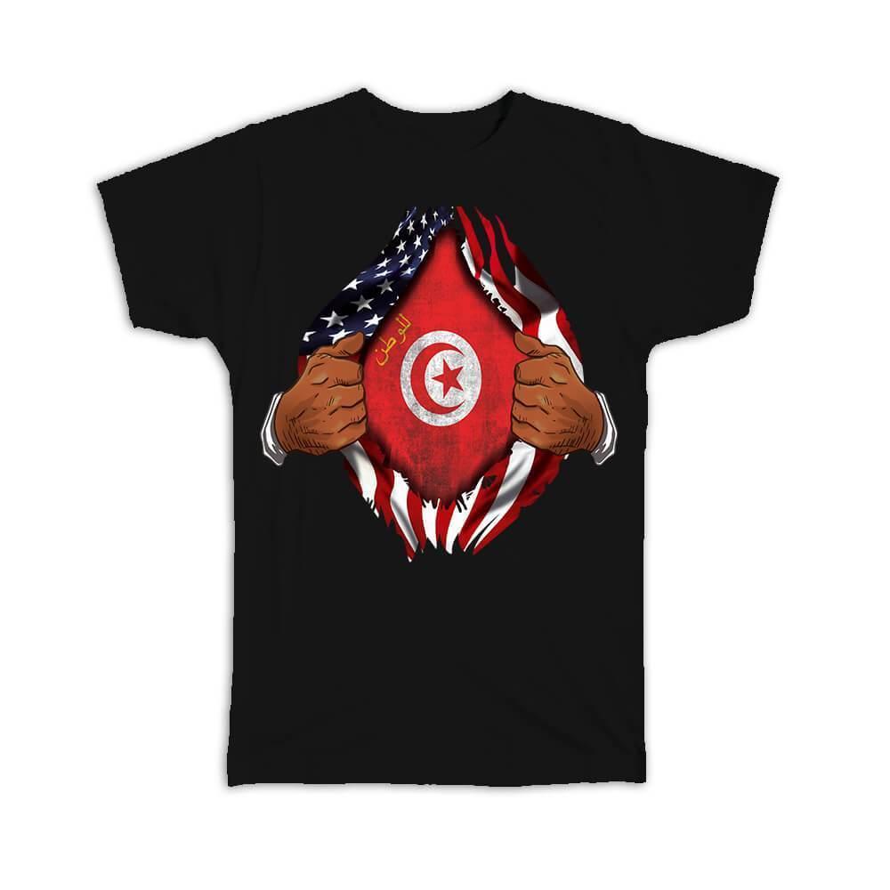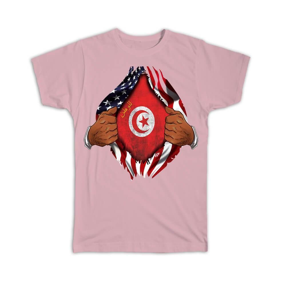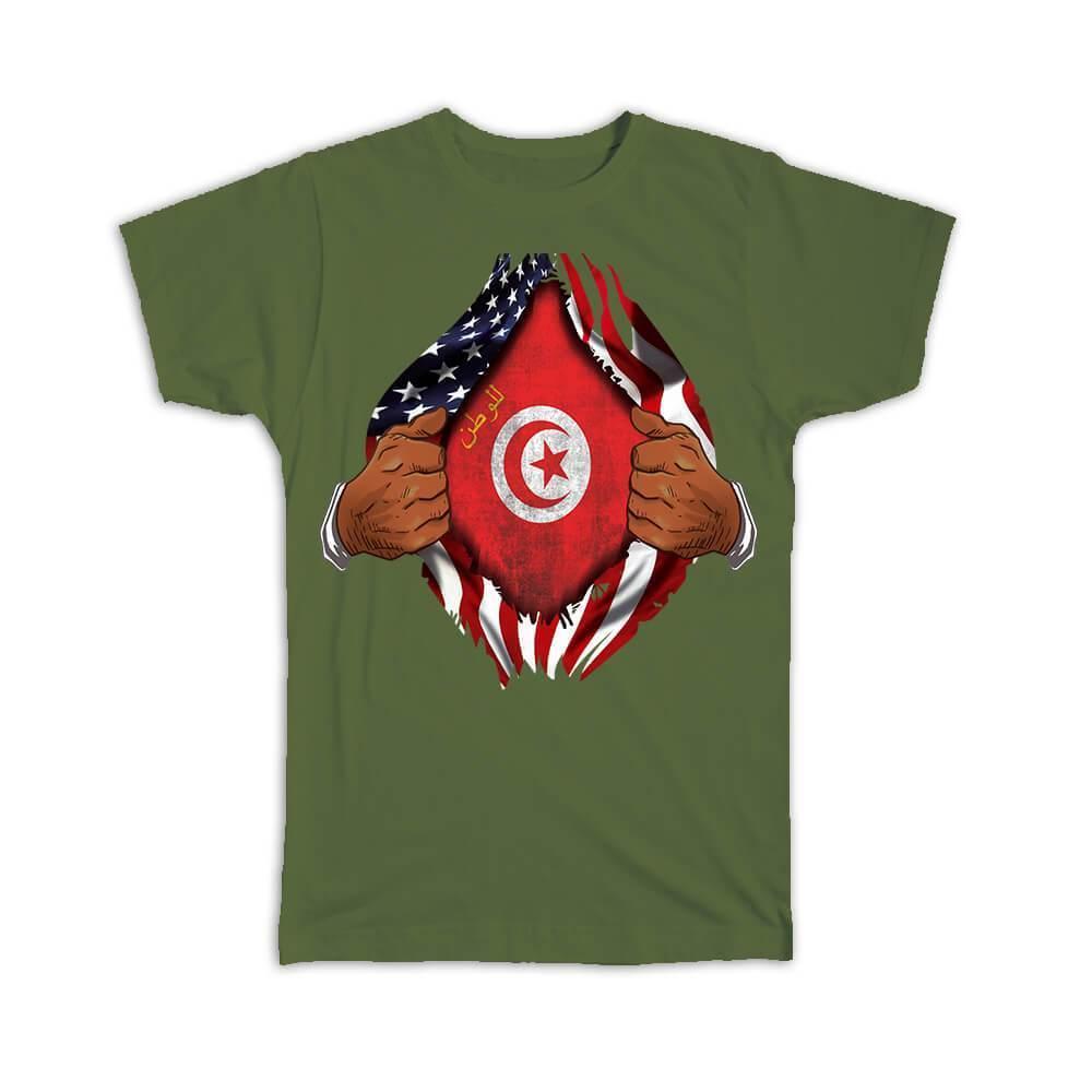 Tunisia : Gift T-Shirt Flag USA American Chest Tunisian Expat Country