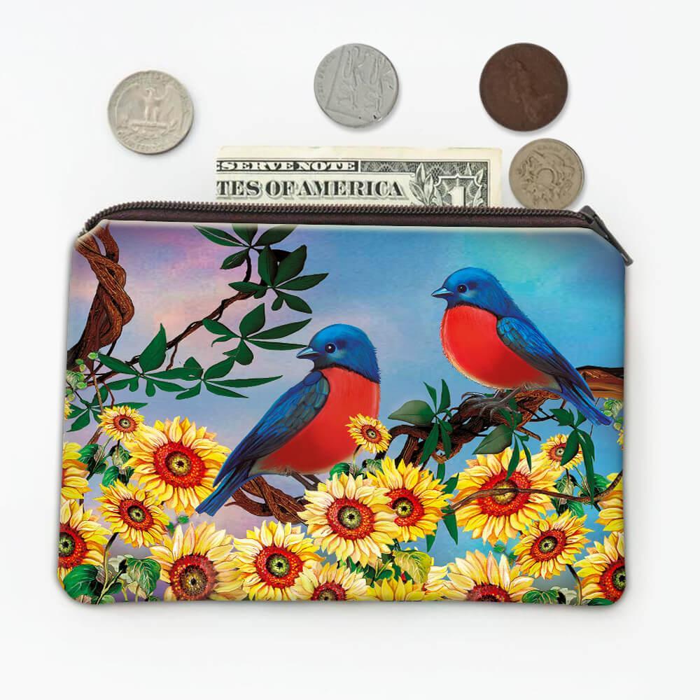 Bird Sunflower : Gift Coin Purse Colorful Decor Flower Ecology Nature Aviary