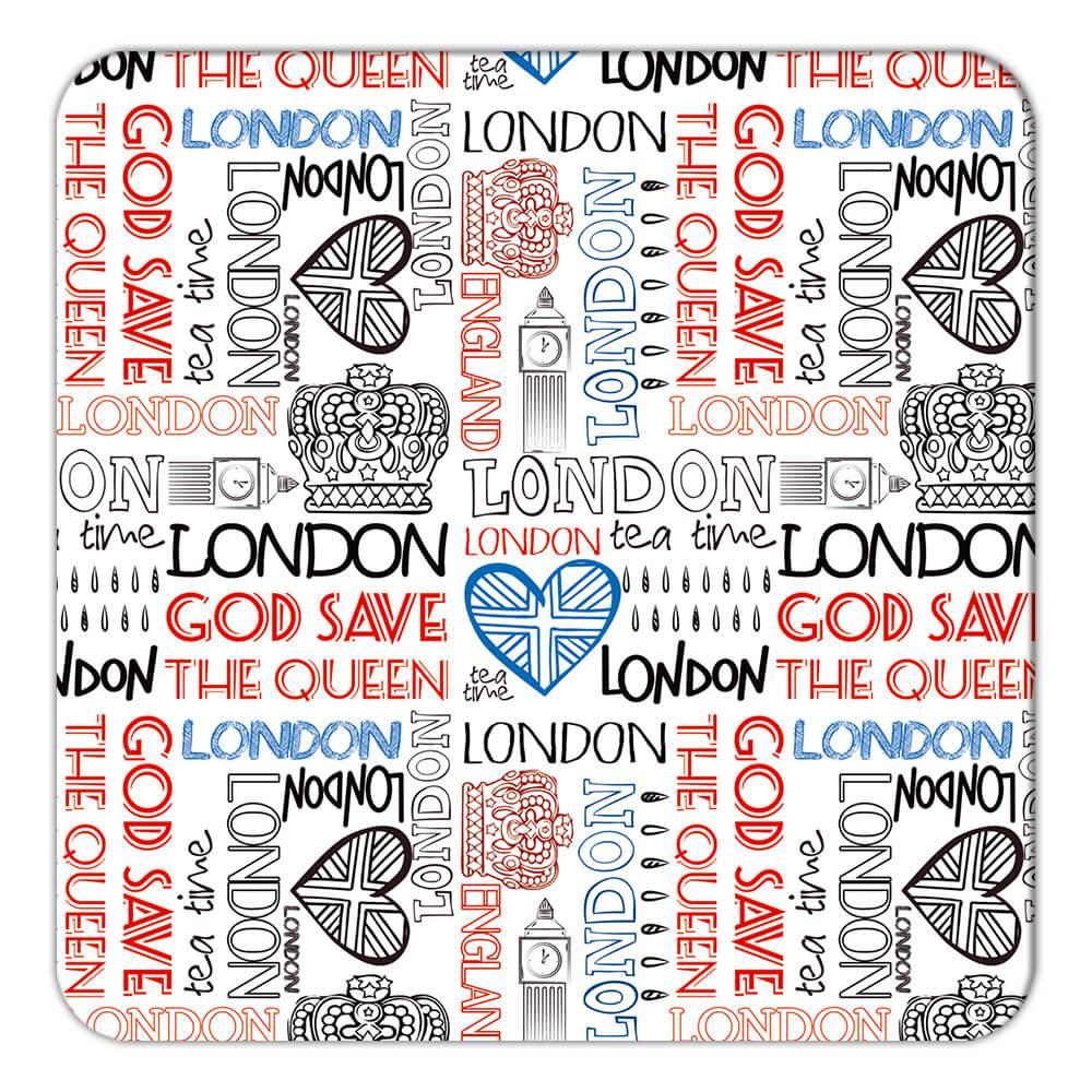 London Text Pattern : Gift Coaster Travel Royal Crown Tea Time Bag Craft Fabrics
