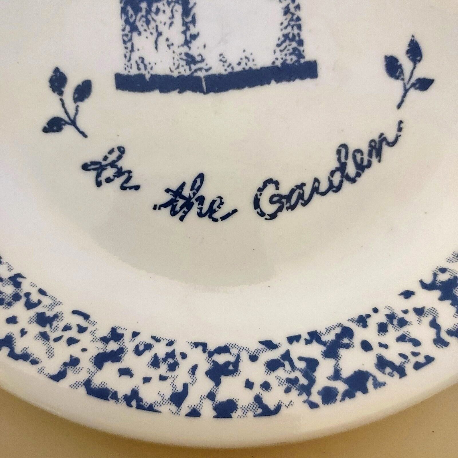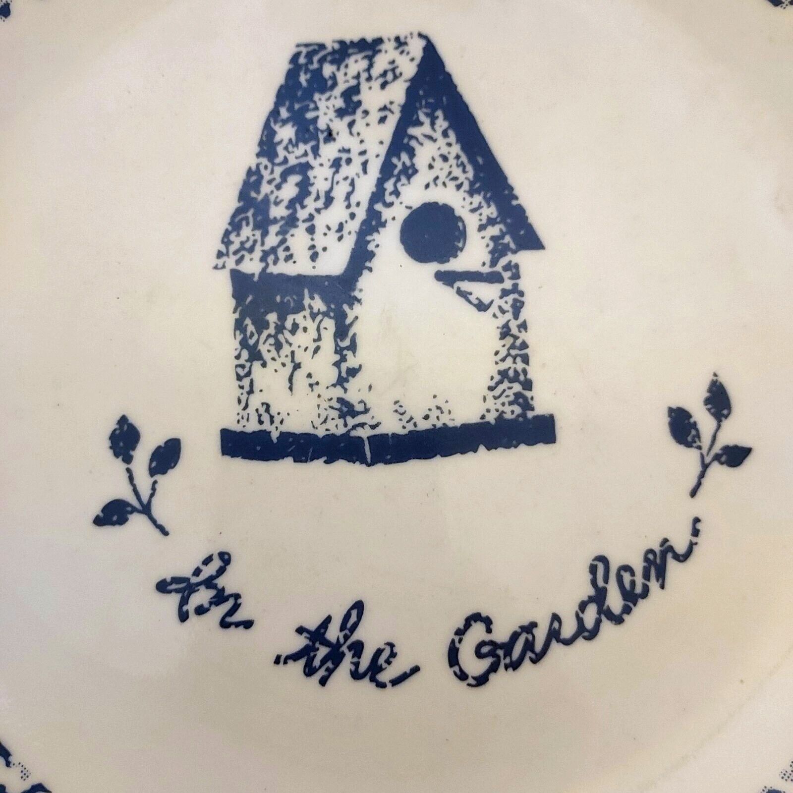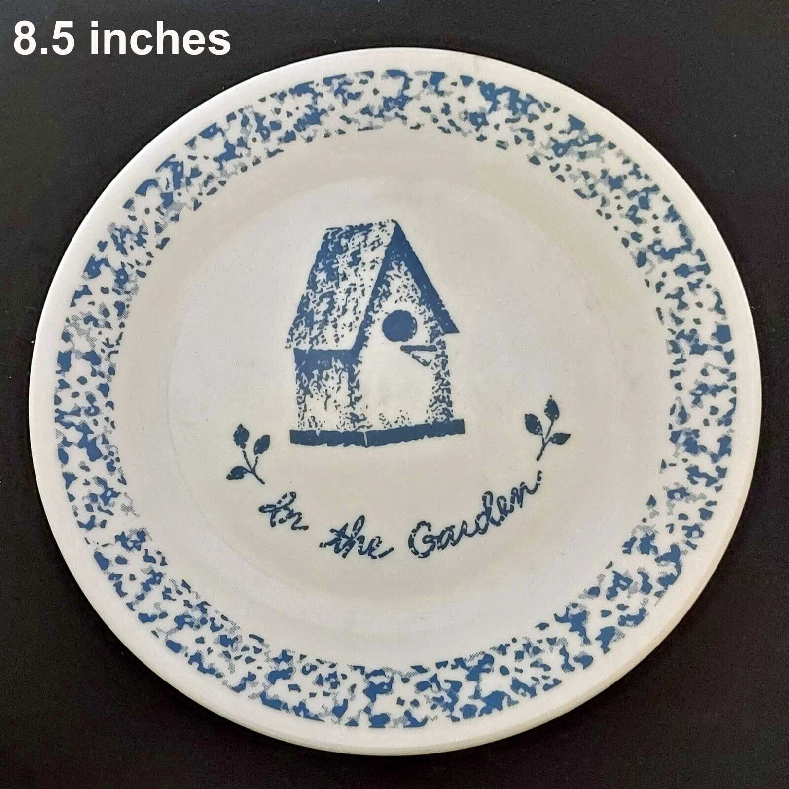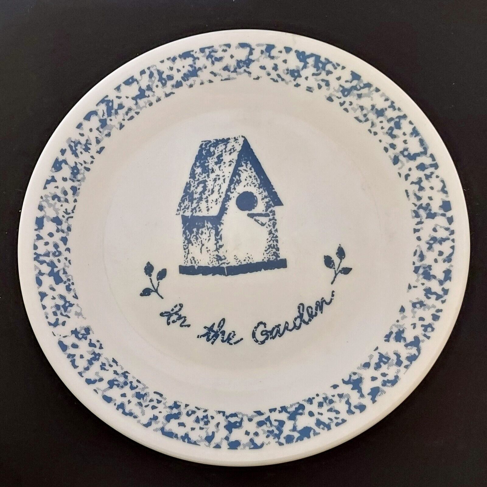 In The Garden Birdhouse Corelle Sponge Luncheon Plate Blue White 8.5 Inches