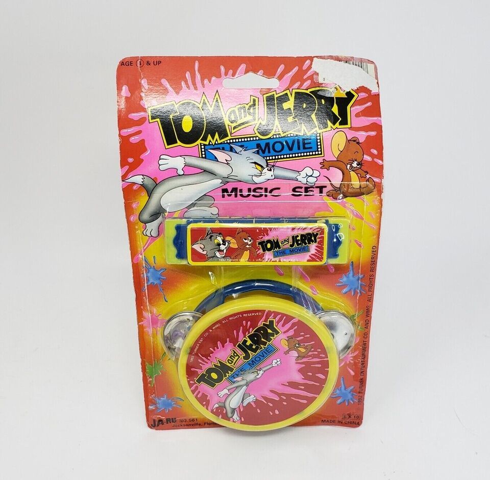 VINTAGE 1992 TURNER TOM AND JERRY THE MOVIE MUSIC SET HARMONICA + TAMBOURINE TOY