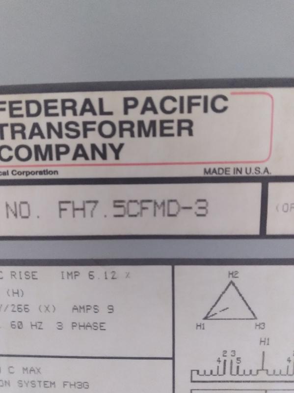 Federal Pacific FH7 5CFMD-3 Transformer 7.5kVA