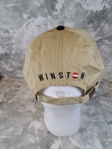 This hat is a classic piece from the Winston Cigarette product line, and its model is a baseball cap. It was made in China with high-quality cotton fabric. The hat is in good condition and perfect for collectors or anyone who loves vintage style. Get this unique hat today and add it to your collection!