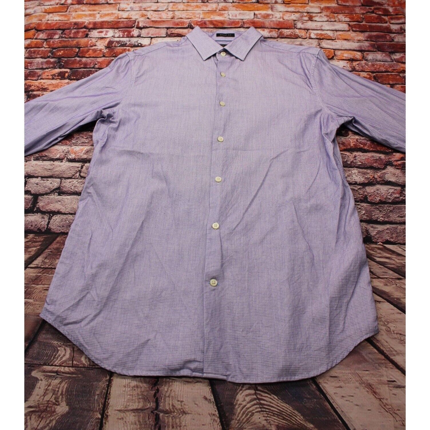 Crafted from 100% Supima cotton, this Banana Republic dress shirt offers a sophisticated look with a unique lilac micro pattern.
