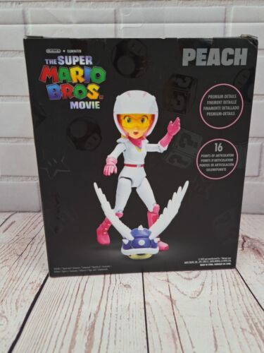 Get ready to race with this 5-inch action figure of Princess Peach from the Super Mario Bros. movie. Designed by JAKKS Pacific, this original and licensed reproduction features the beloved character in her racing suit, complete with a removable helmet and detailed accessories. Fans of the franchise will love adding this piece to their collection, which celebrates the theme of TV, Movie Video Games.