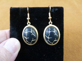 (EE-241) black + gold crackle oval Czech glass oval dangle wire hook earrings