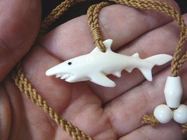 (Internal #JBA-19) You are bidding on a fully 3-D, beautifully hand hand-made pendant GOBLIN SHARK made of natural cow - water buffalo organic; measures 2" long x 3/4" wide X 3/8" THICK; superb figure detail; comes on a 28" braided double strand natural cord necklace with sliding knot bead closure that can be adjusted to any length smaller.