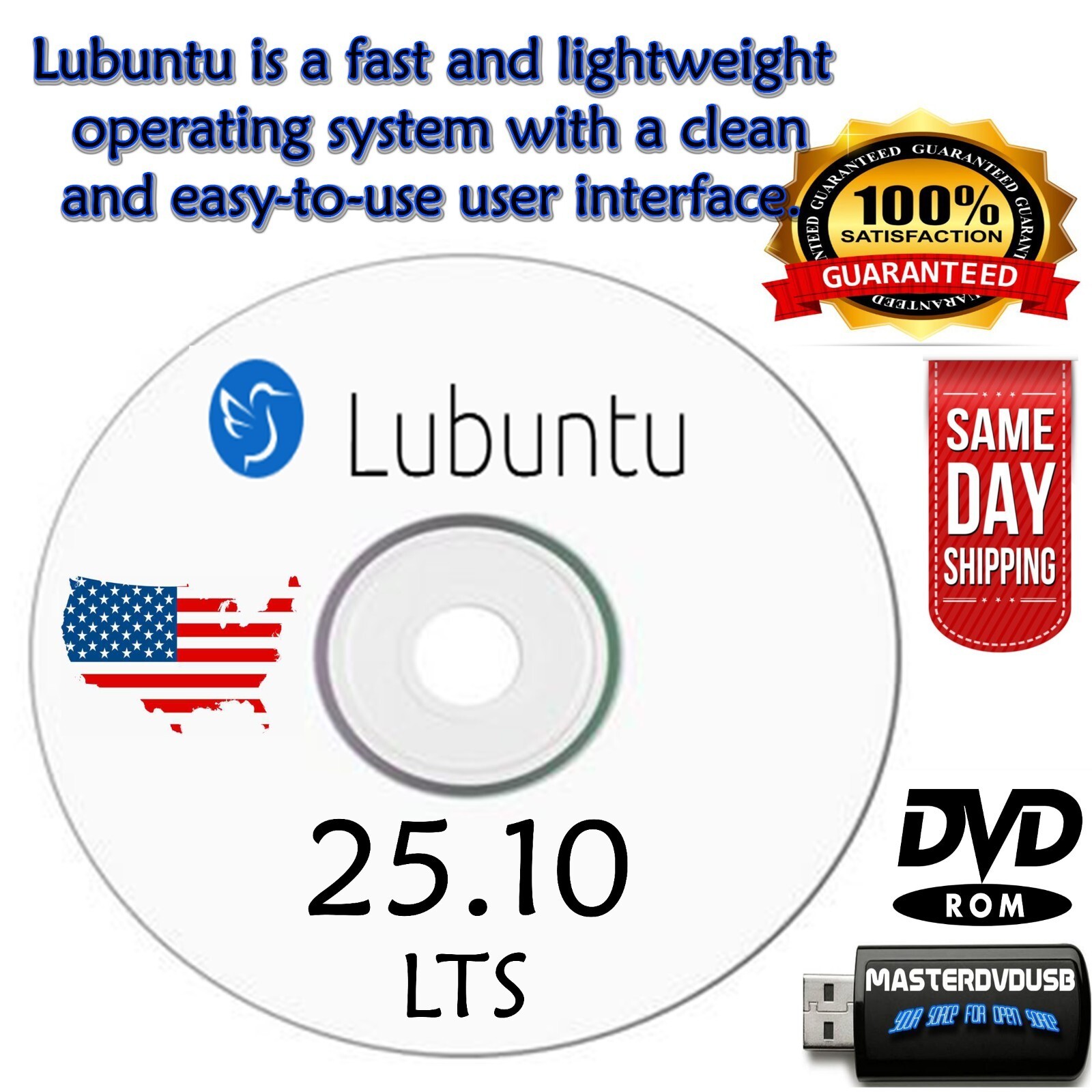 Lubuntu 25.04 (Plucky Puffin) Bootable LIVE/Installer DVD ? Ultra-Lightweight, Modern User-Friendly OS | FREE Same-Day Shipping!