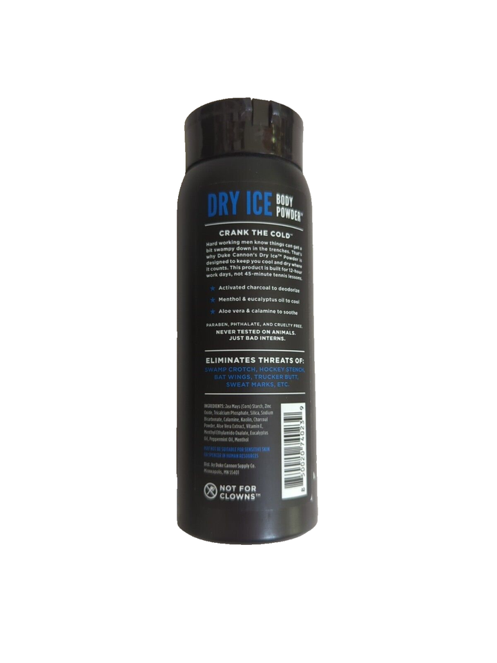 1x Duke Cannon Dry Ice Body Powder Trench Warfare 6 oz. Talc free. New, but no factory seal.