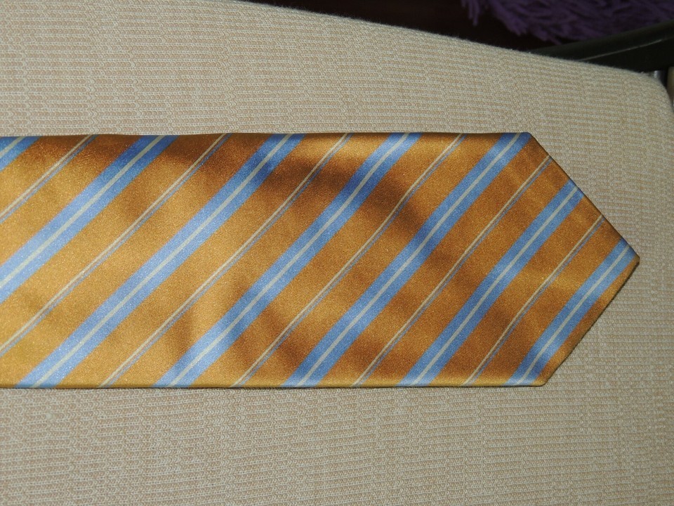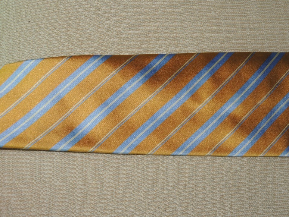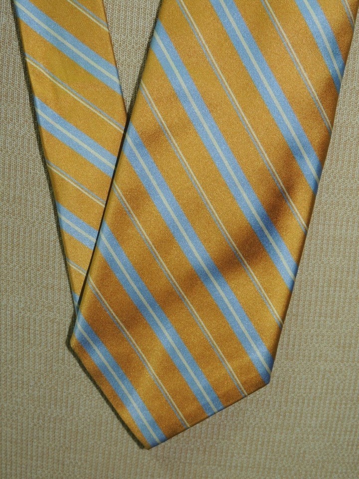 Brooks Brothers USA Neck Tie/Necktie Silk gold blue white stripes 60"x3.75"