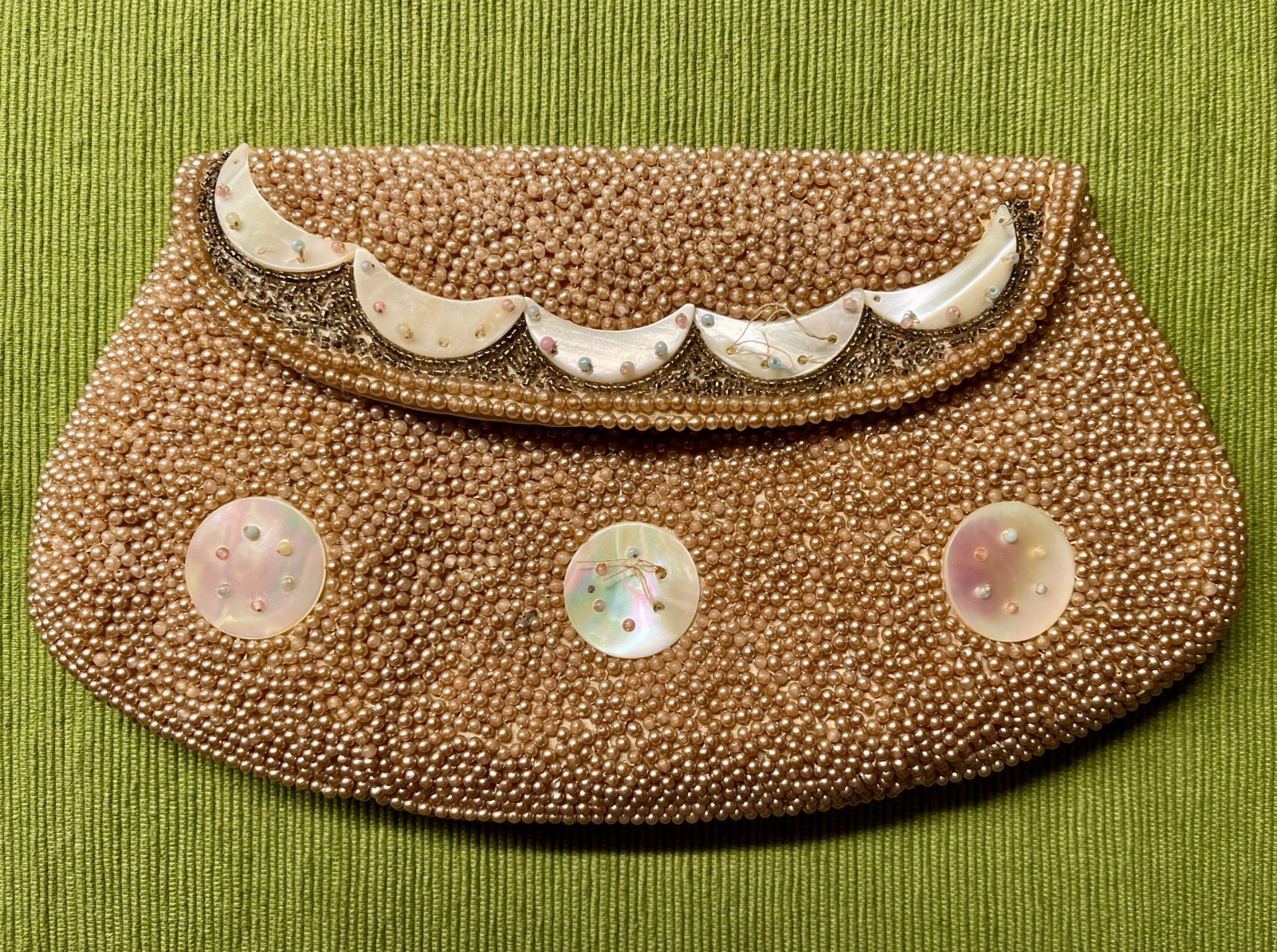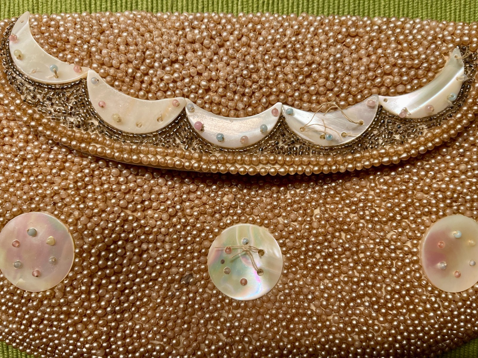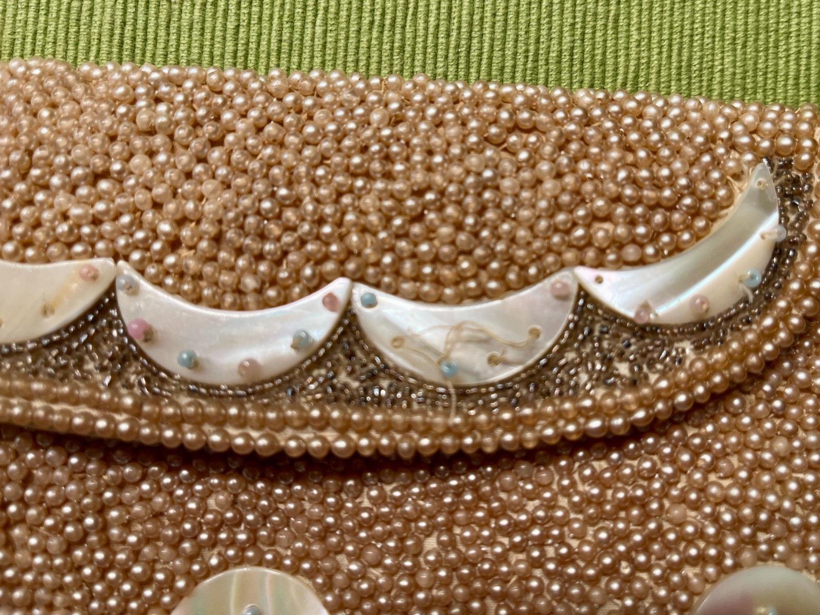 VTG K&G CHARLET BEADED TINY SEED IVORY PEARLS CLUTCH BAG 1940s *Mother of Pearl*