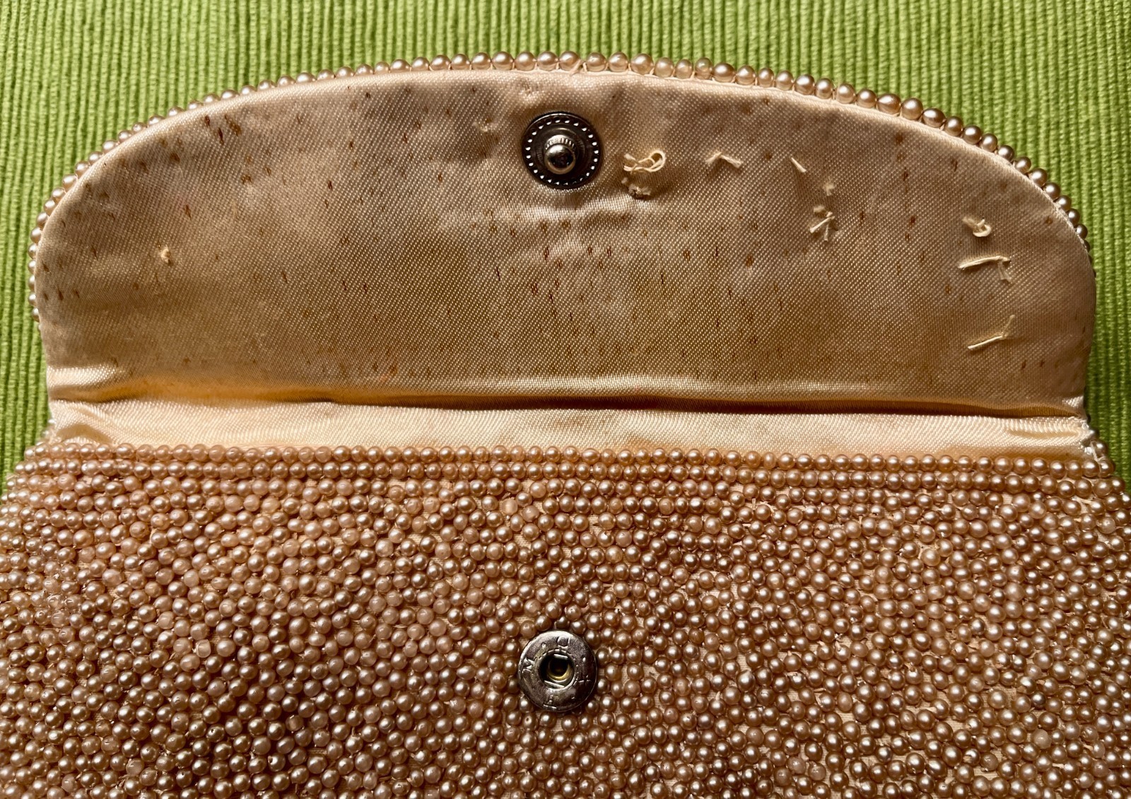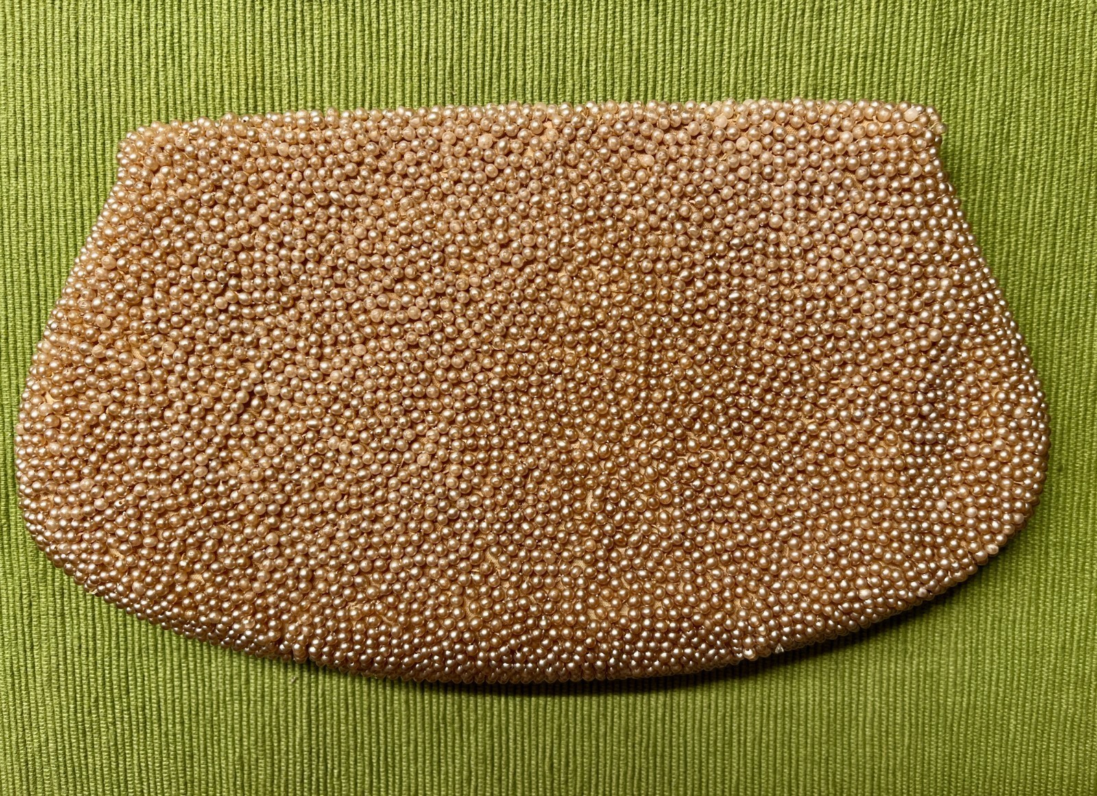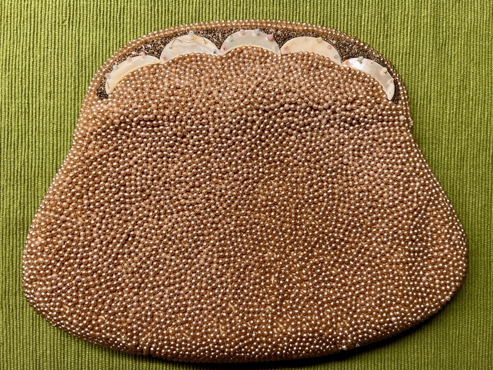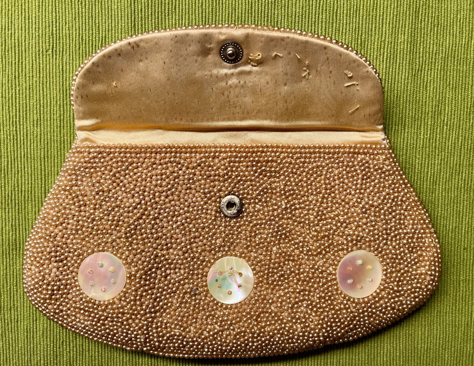 VTG K&G CHARLET BEADED TINY SEED IVORY PEARLS CLUTCH BAG 1940s *Mother of Pearl*