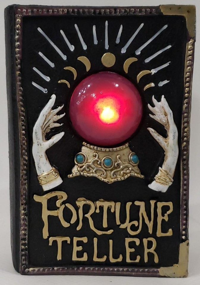 Unveil the mysteries of the future with this captivating "Fortune Teller" illuminated decor piece! Designed to resemble an ancient, mystical book, this unique item features a glowing crystal ball, making it a perfect addition to your Halloween decorations, witchy aesthetic, or a year-round conversation starter for lovers of the occult.