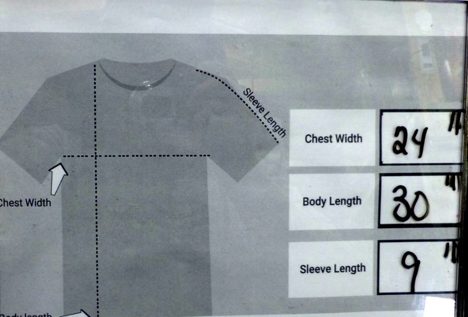 Chest Width = 24", Body Length = 30", Sleeve Length = 9"