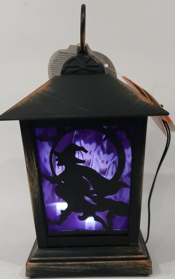 Witch Bat Silhouette: The front panel of the lantern showcases a timeless silhouette of a witch soaring on her broom, with a bat flying below, adding an iconic Halloween motif.