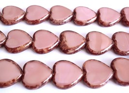 10 15 x 15 mm Czech Glass Window Heart Beads: Coral Pink - Picasso