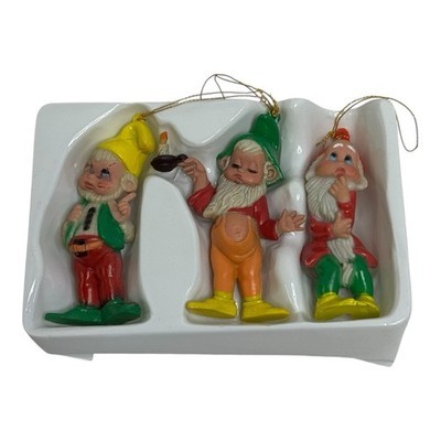 Vintage 1970 ELF HANG UPS Set Of 3 Hand Painted Ornaments Christmas Holiday