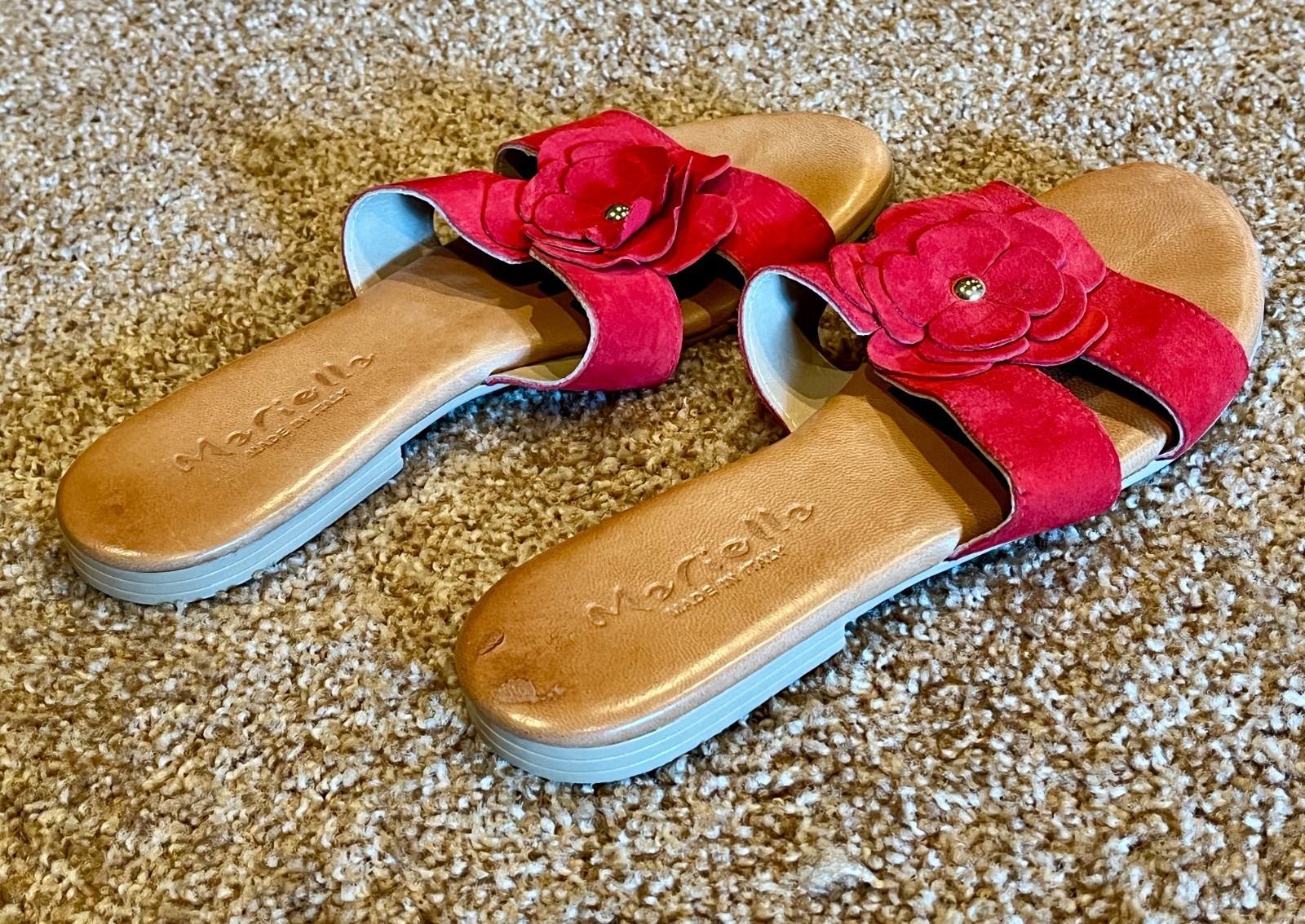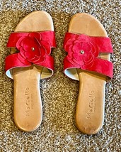 MARIELLA WOMENS SANDALS SLIDE Red Suede Flower Tan Leather Size 8