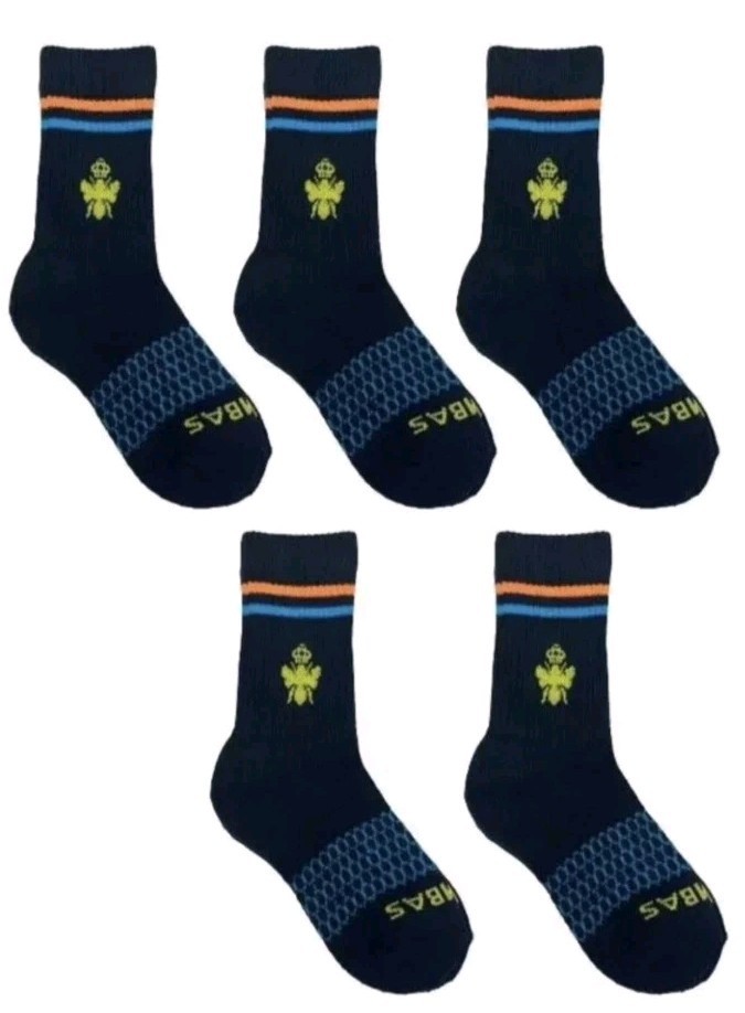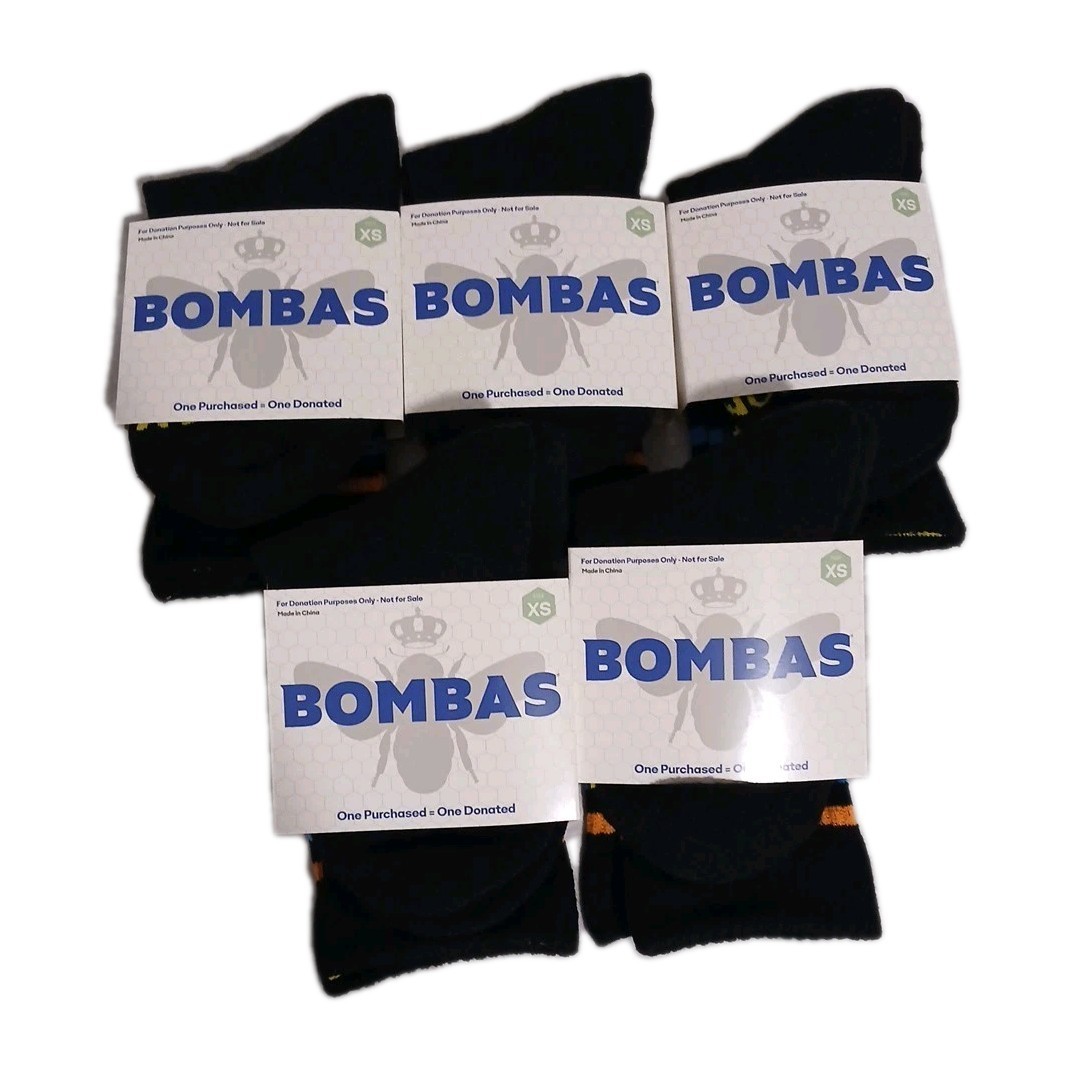 Bombas XS Crew Socks 5 Pair Black Logo Knit Comfort Poly Blend New Tags