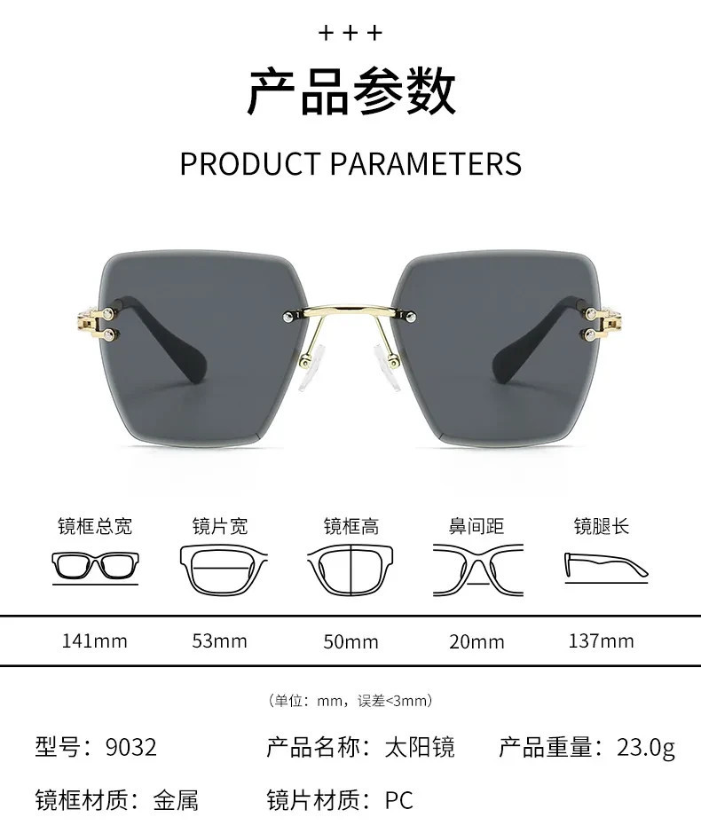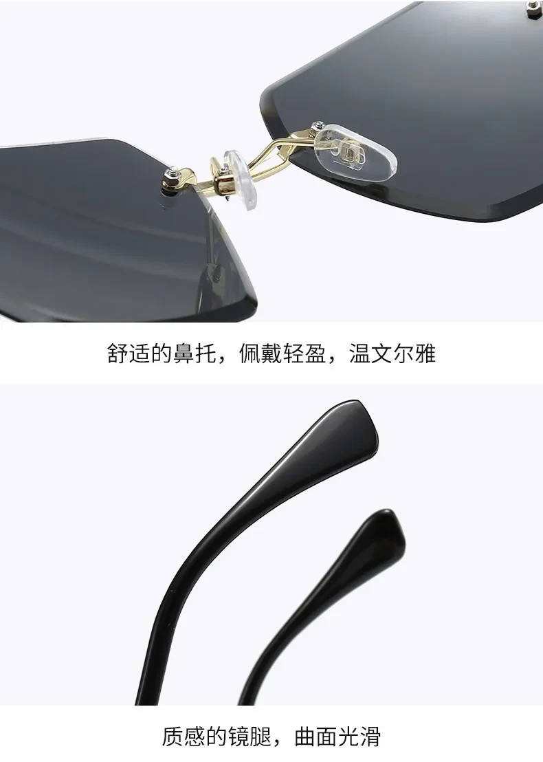 These unisex rimless oversized sunglasses feature a stylish gold wire frame and brown gradient polycarbonate lenses with UV400 protection. The geometric design and city theme make them a fashionable and practical accessory for both men and women. The combination of the gold frame and brown lenses adds a touch of sophistication to any outfit, while the oversized design provides extra coverage and protection from the sun's rays.