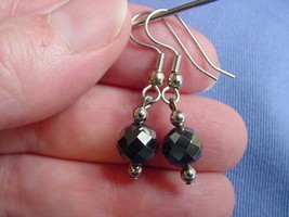 EE-364) 8mm faceted Black hematite gemstone 1 bead silver wire dangle EARRINGS