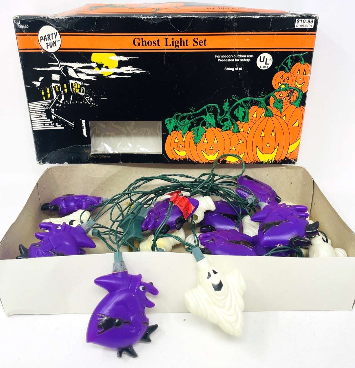 2 Strings Vintage Halloween Blow Mold Lights Noma Witch Ghost Party Fun Strands