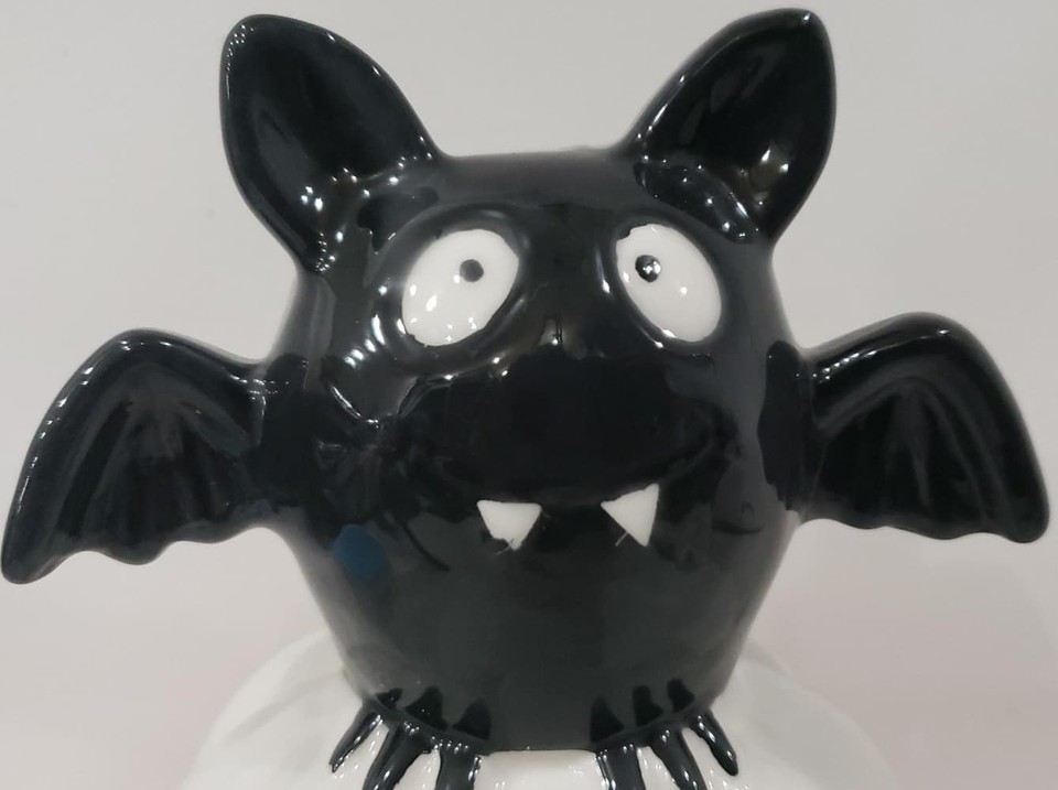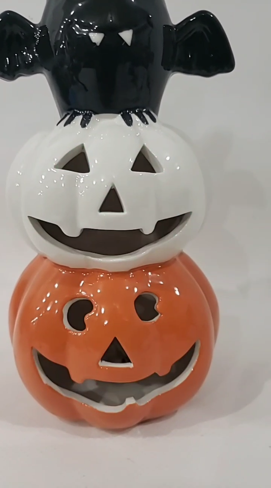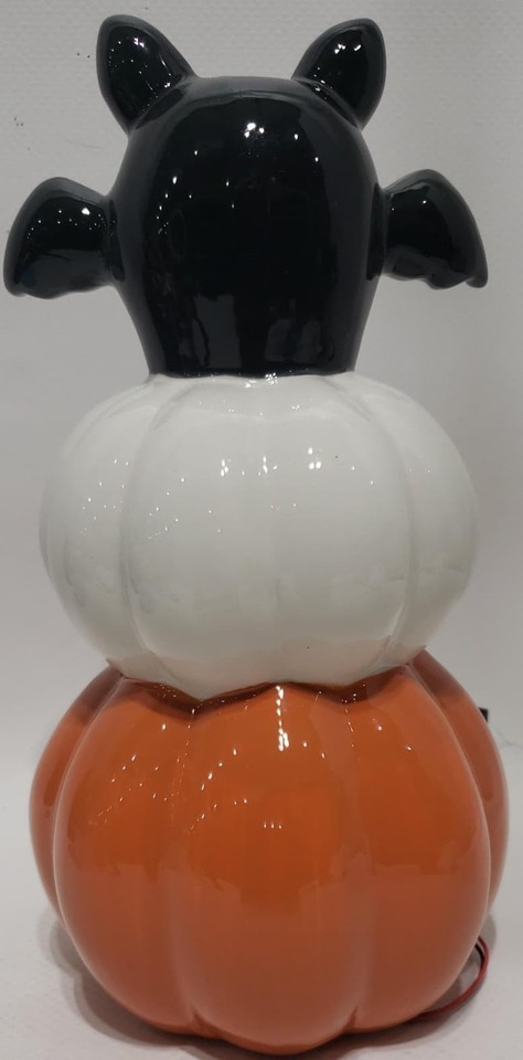 Spooky Village Halloween Light Up Jack O Lantern Pumpkin With Bat Decor 9.75"