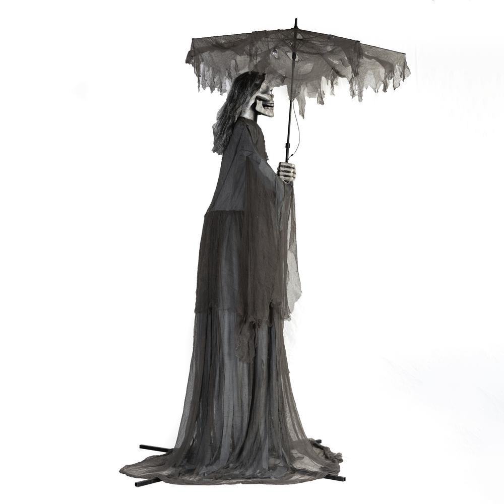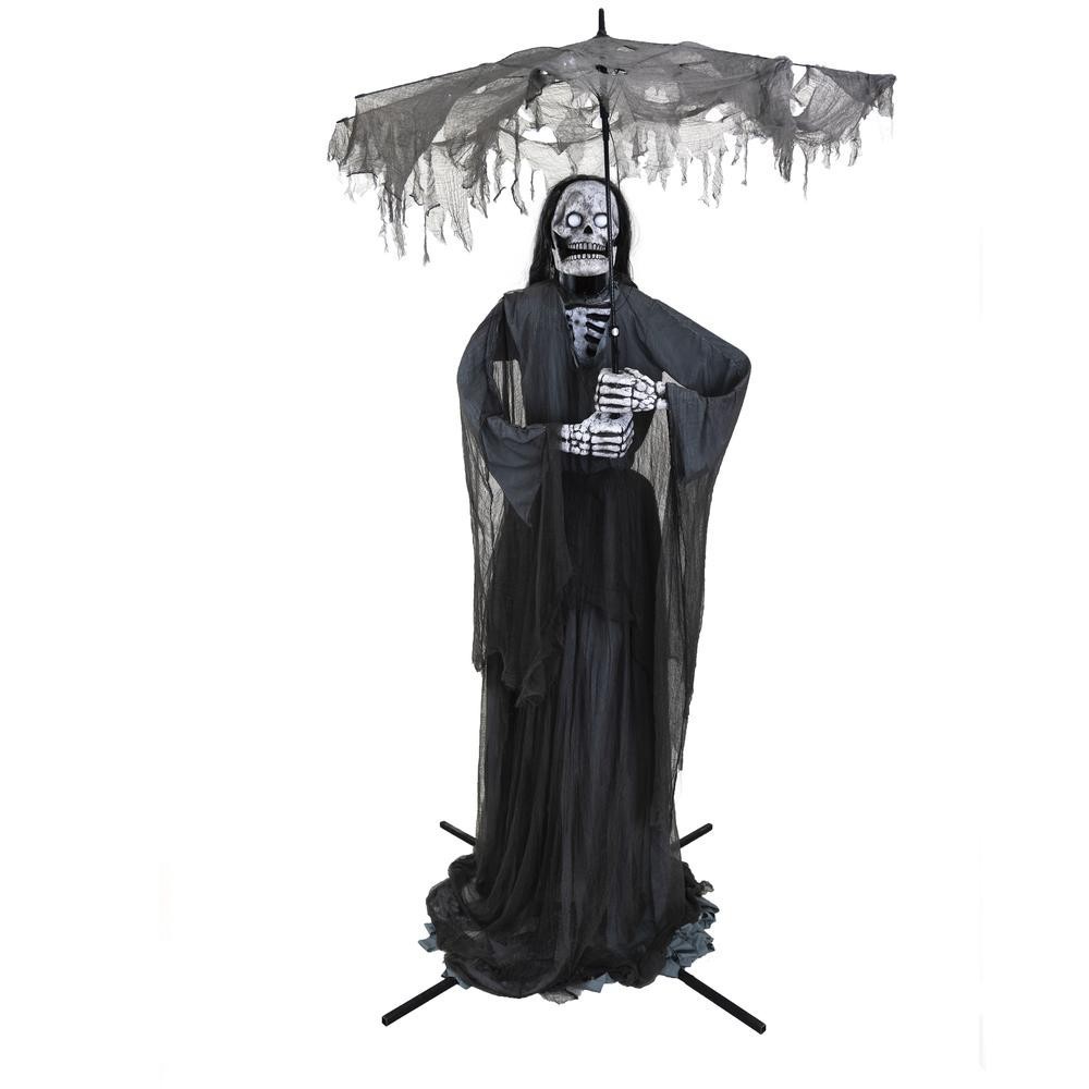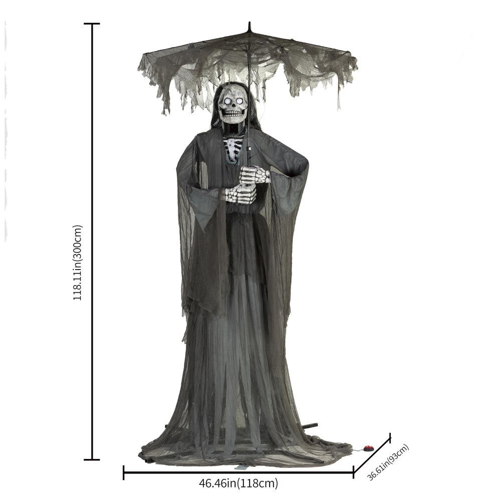 ALMOST 9' GHOSTLY SPECTOR SKELETON HOLDING UMBRELLA ANIMATRONIC HALLOWEEN PROP