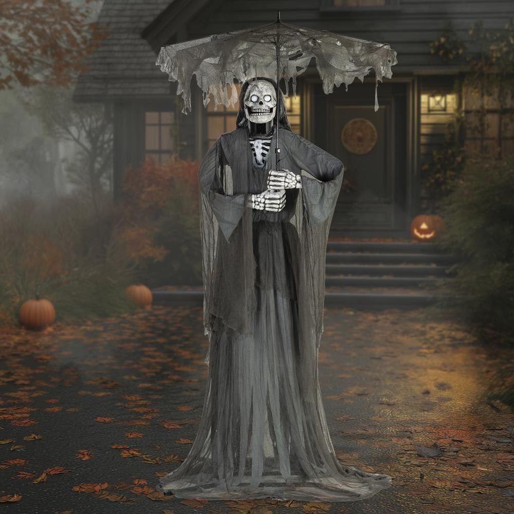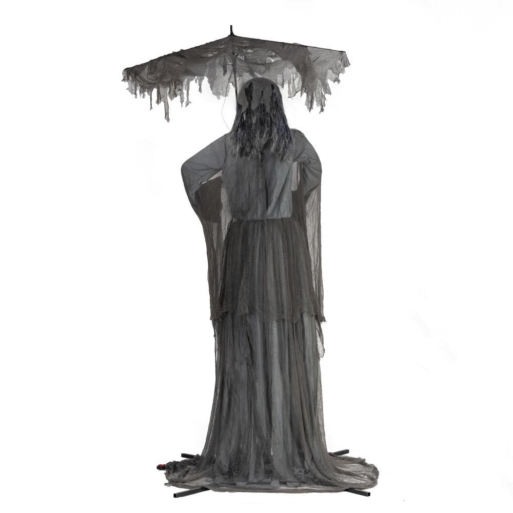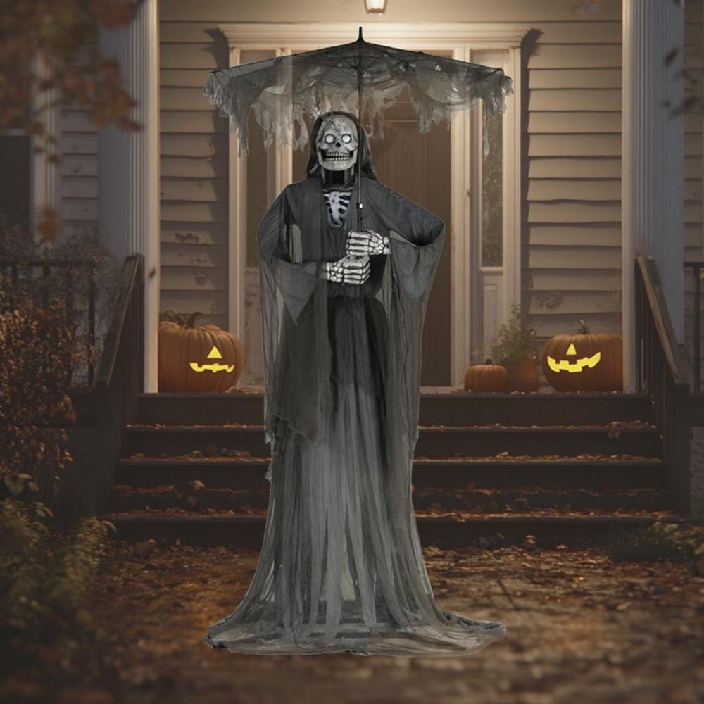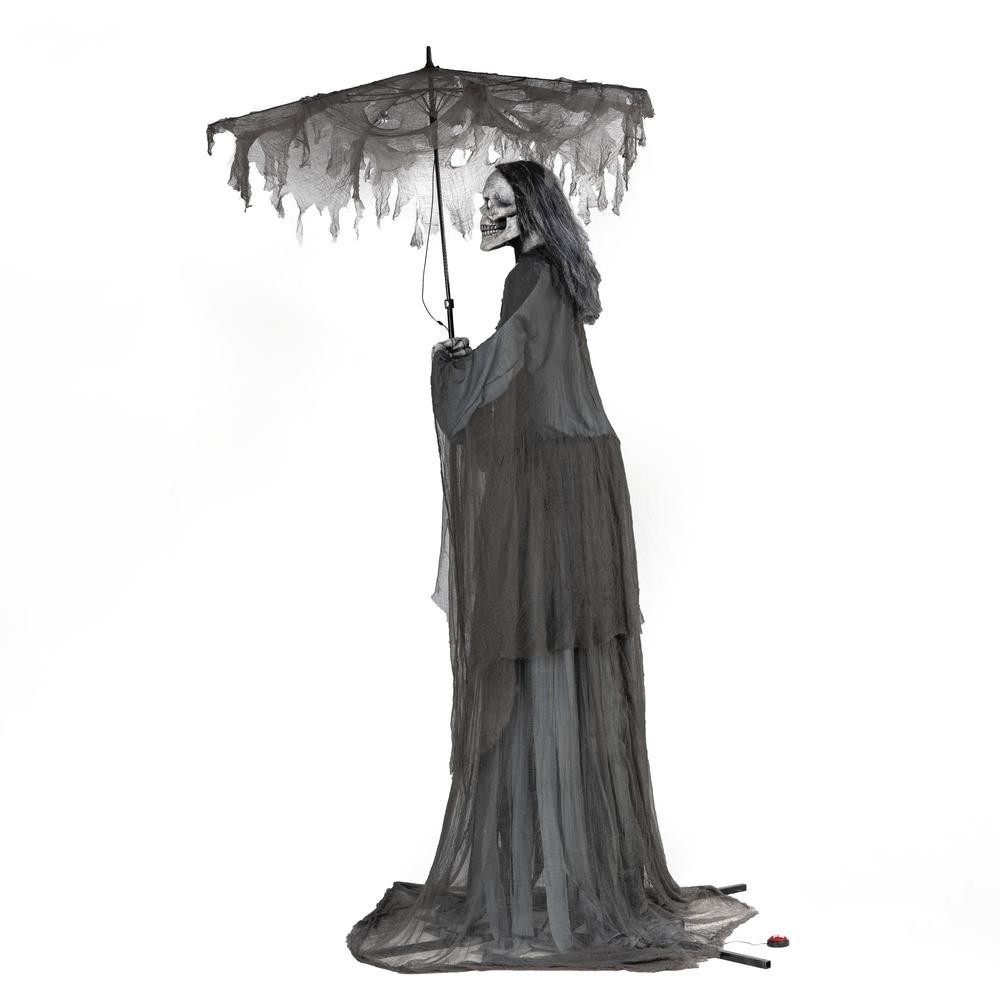 ALMOST 9' GHOSTLY SPECTOR SKELETON HOLDING UMBRELLA ANIMATRONIC HALLOWEEN PROP
