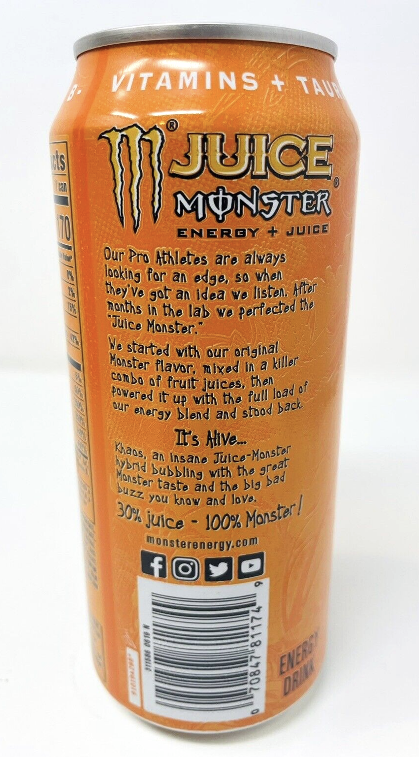 for a full US can of Monster Juice Khaos energy drink. Can is in overall