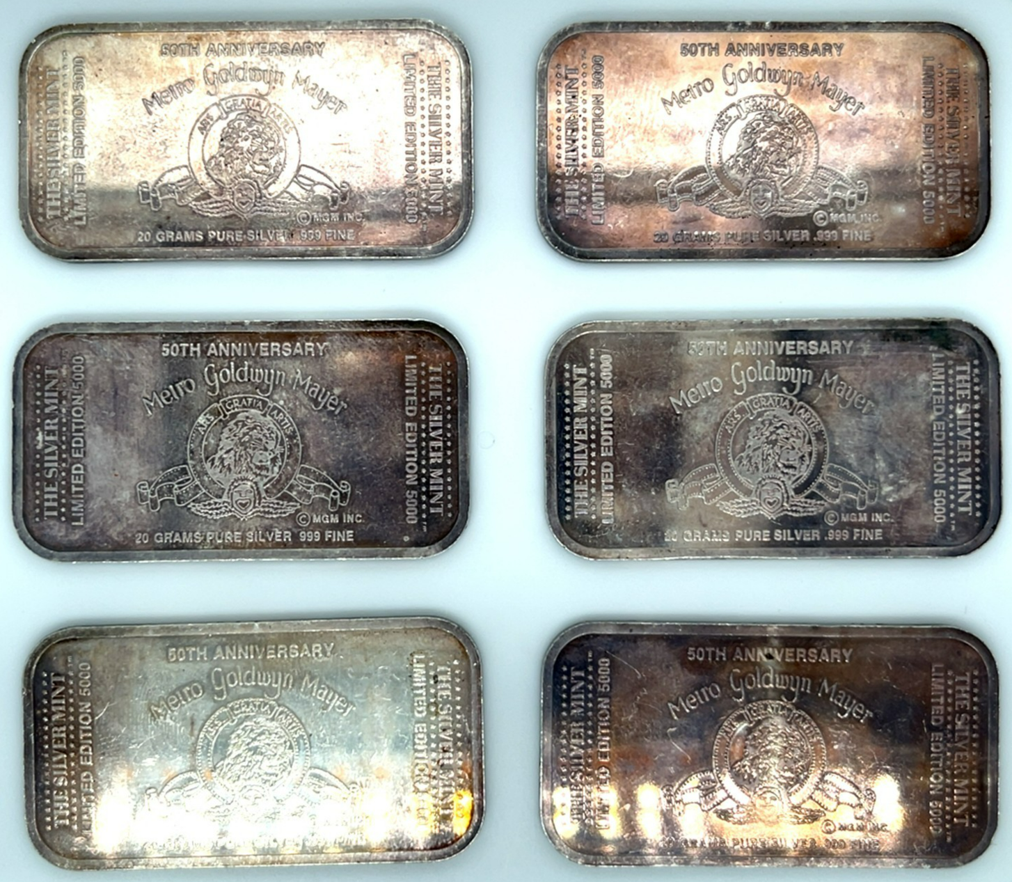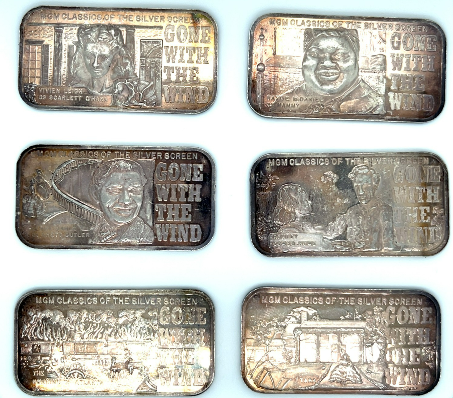 Gone With The Wind 20 gram Silver Art Bar Collection of 6 Bars Nicely Toned!