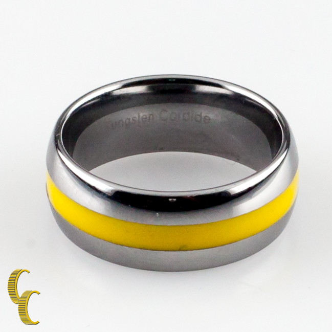 Homme Tungsten Carbure Bague W/Centre Jaune Rayure Taille 8