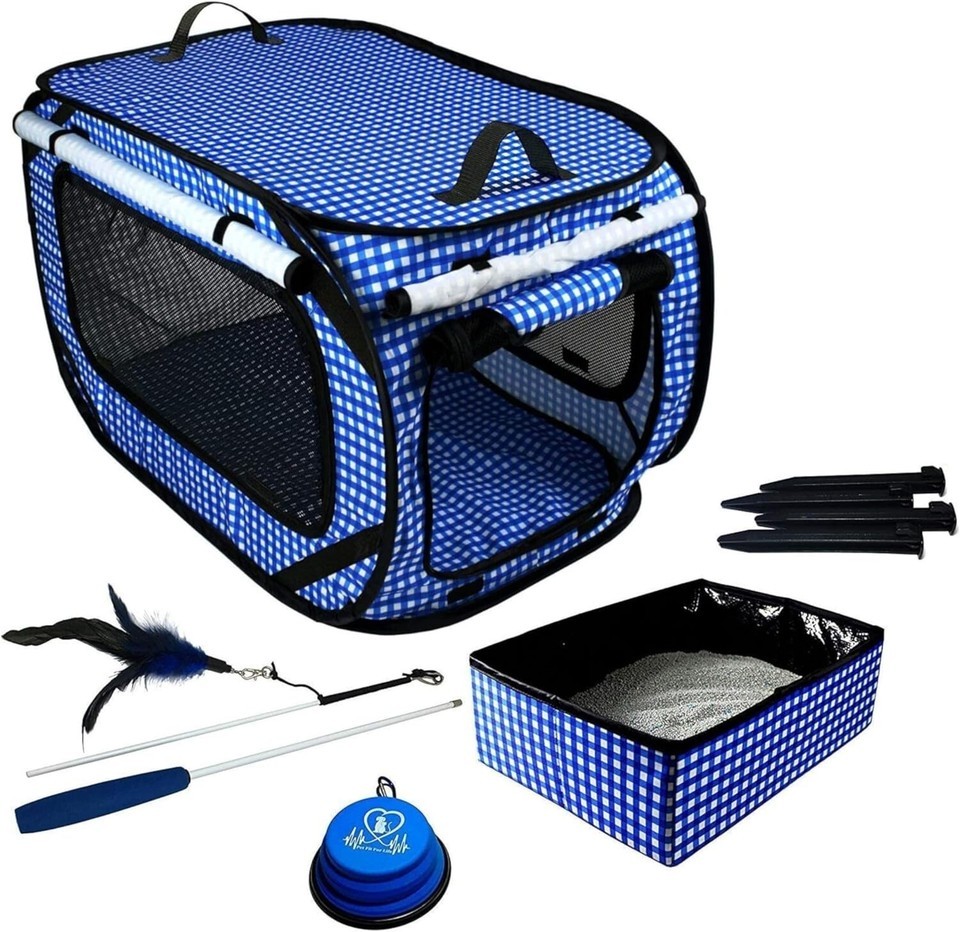 Durable Extra Large Cat Carrier with Litter Box & Feather Toy - Ideal for Travel