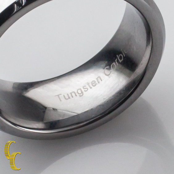 Uomo Carburo di Tungsteno Anello W/Centrale Giallo Righe Misura 8