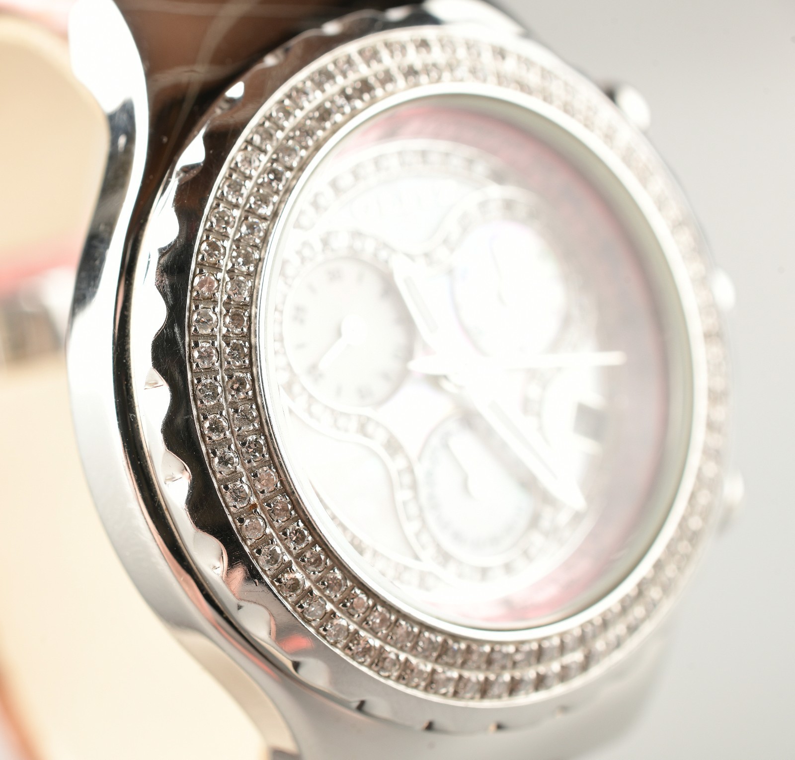 Pre-owned. The watch is in good working order. Shows signs of wear on the bracelet (cracks, scuffs). Scratch free crystal
