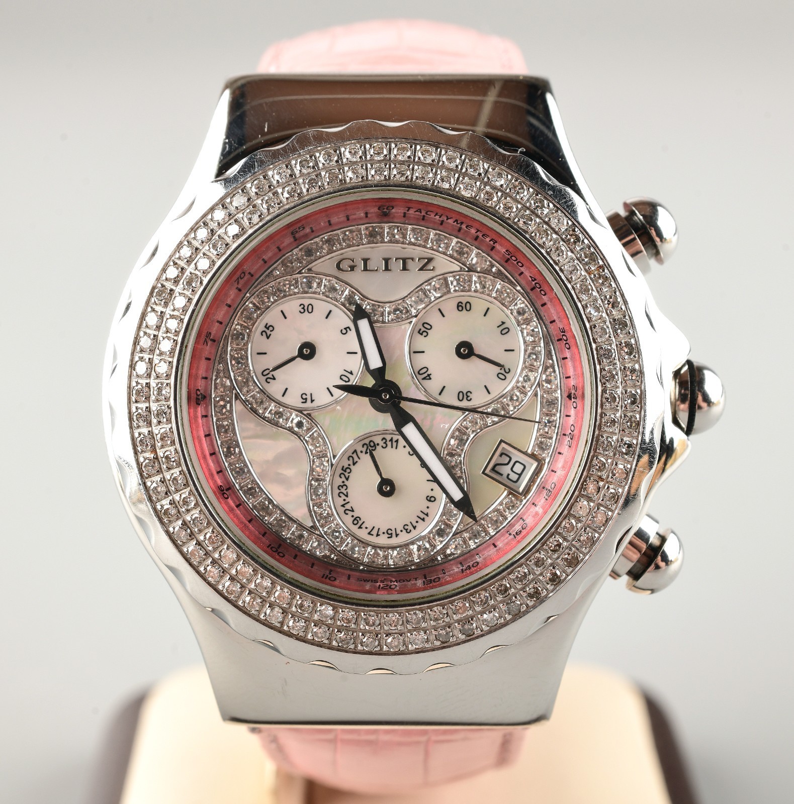 *GLITZ DIAMOND STAINLESS STEEL PINK BRACELET WATCH 8329 G0096