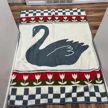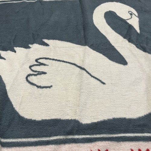 Vintage Vuteks Vukovar Reversible Swan Tulips Throw Blanket Yugoslavia 60x80 ‘86