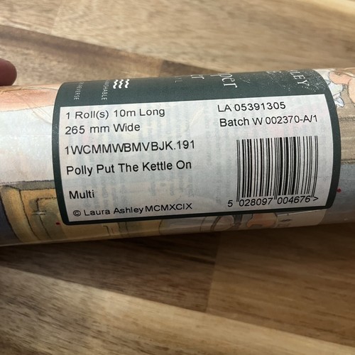 3 Rolls (10m long x 265mm wide each roll) Vintage Laura Ashley Home Wallpaper Border Polly Put the Kettle On.