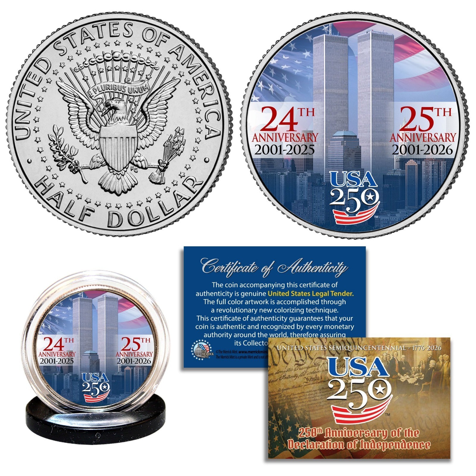 WORLD TRADE CENTER 9/11 24th - 25th Anniversary JFK Half Dollar Coin AMERICA 250