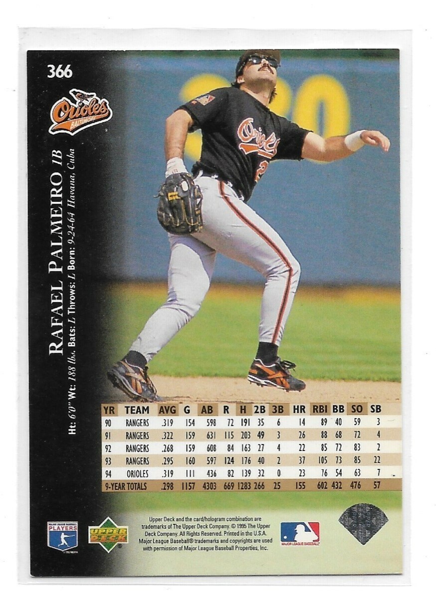 1995 Upper Deck, Rafael Palmeiro, #366, Orioles