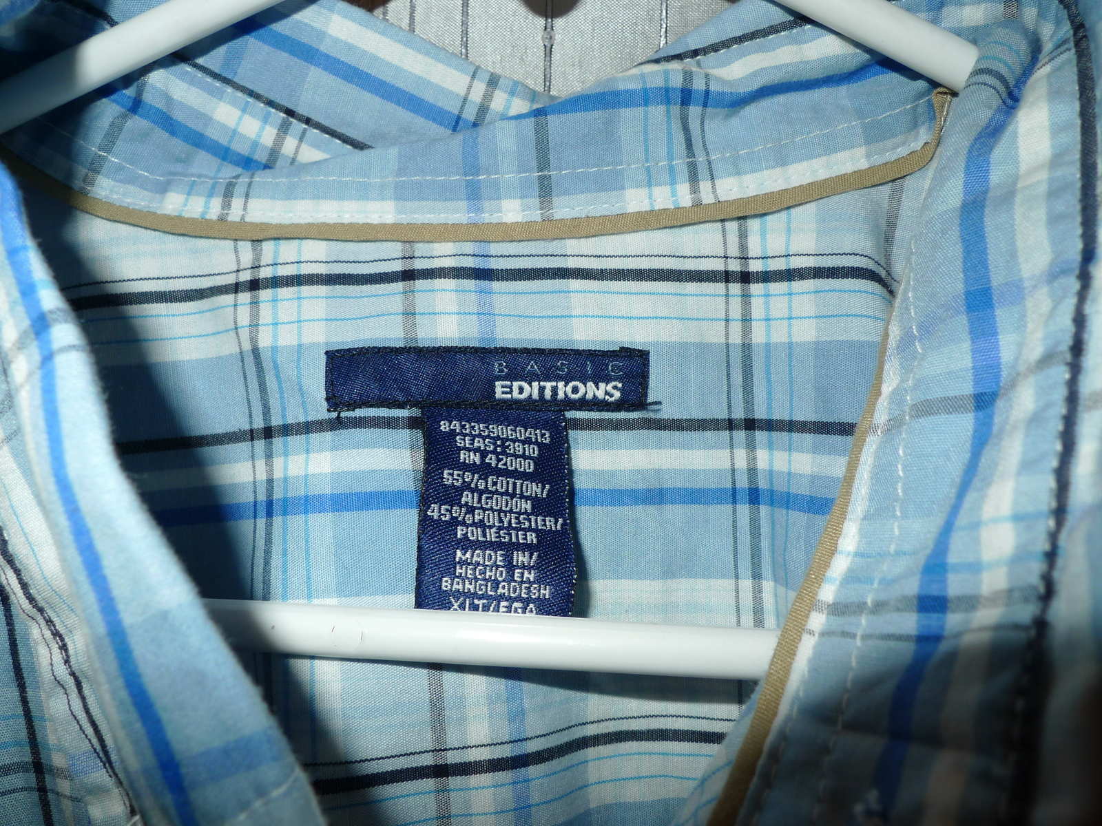 Basic Editions men's XL 55% cotton 45% polyester classy short sleeve button dress shirt. Bought at Kmart wore one time. Made in Bangladesh.