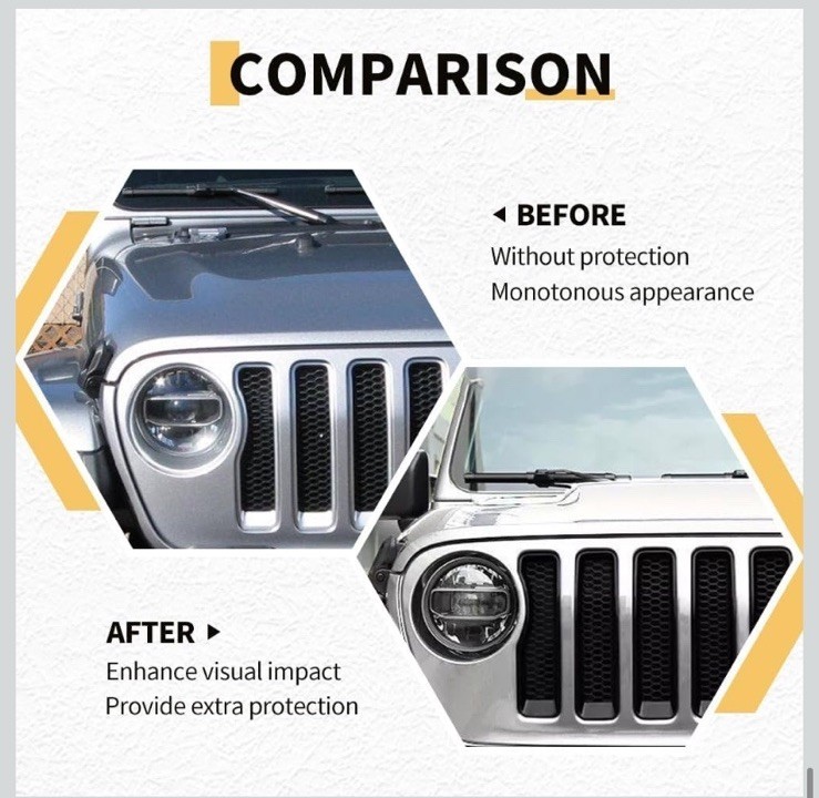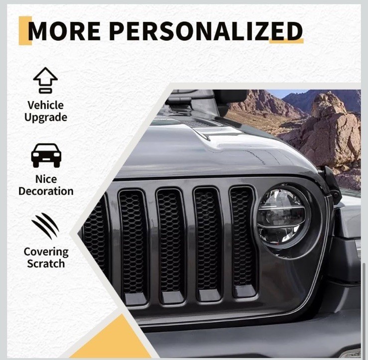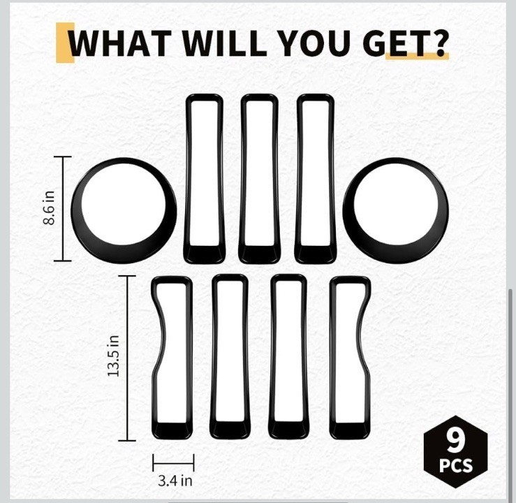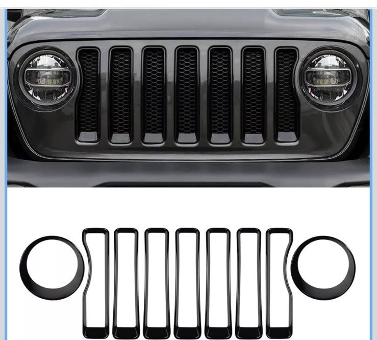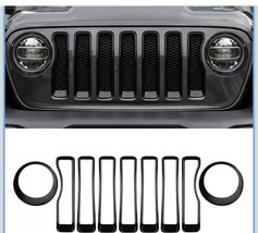 9Pcs Front Grille Inserts & Cover Trim for Jeep Wrangler JL Sport 2018-2024