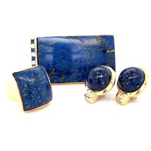 14K Yellow Gold Lapis Lazuli, Diamond, and Sapphire Jewelry Suite