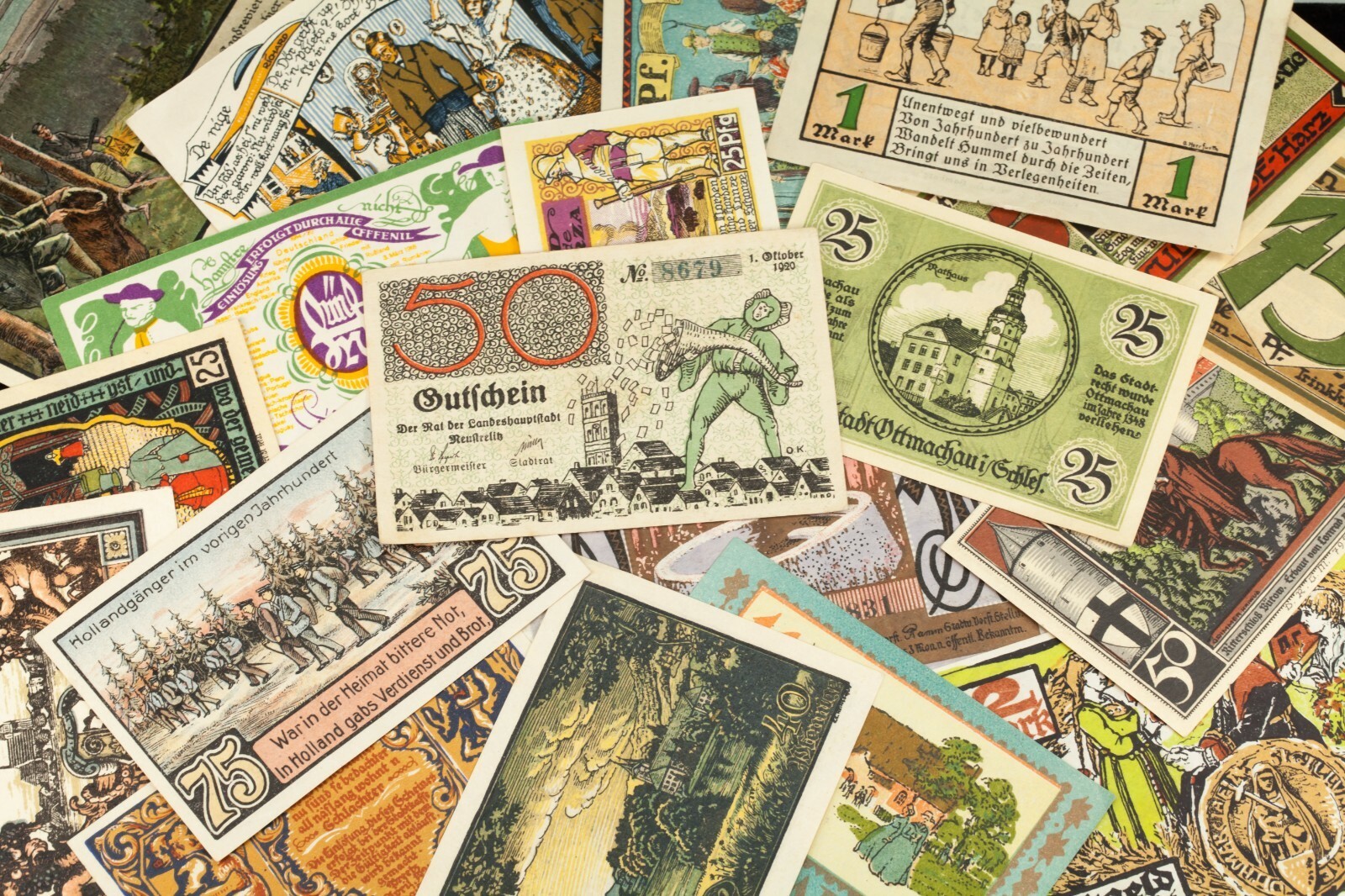Questo lotto includera 25 note individuali nongeld dalla Germania dopo la prima guerra mondiale. Tutto sara in condizione extra a beneficio (XF-UNC). Valori facciali tra 5 pfennig a 5 marchi. Tema delle persone; gruppi e individui.