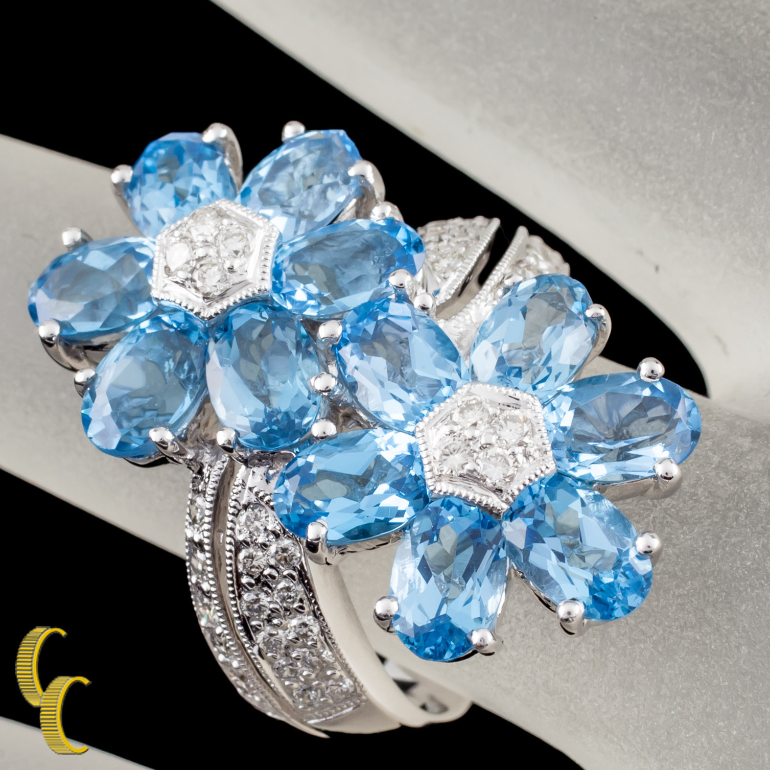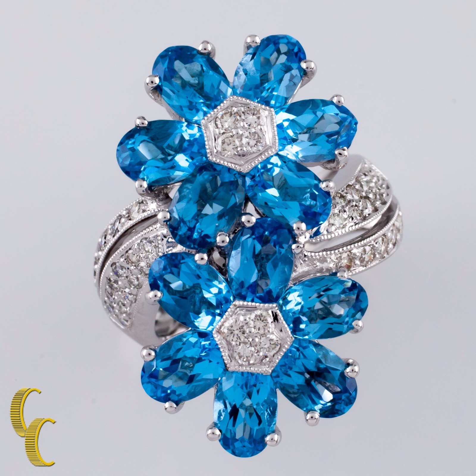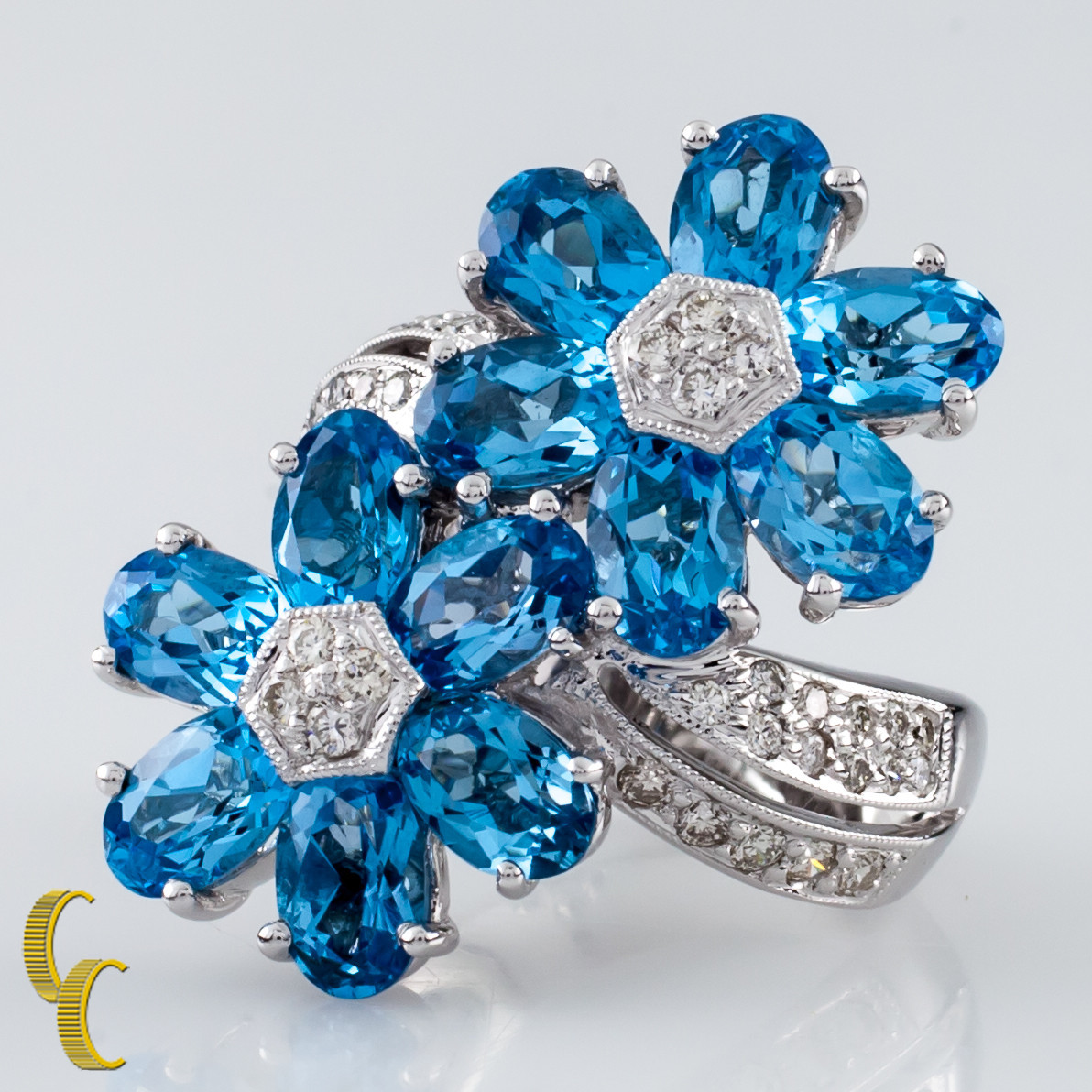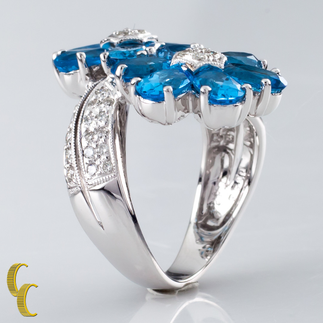 18K Weißgold Blauer Topas & Diamant Blumenring Größe: 5