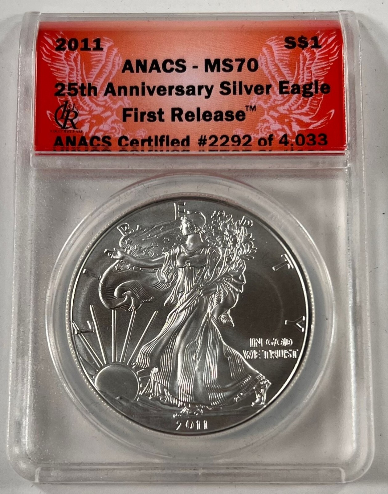 2011 Plateado American Eagle Graduado Por Anacs Como MS-70 First Liberacion 25th