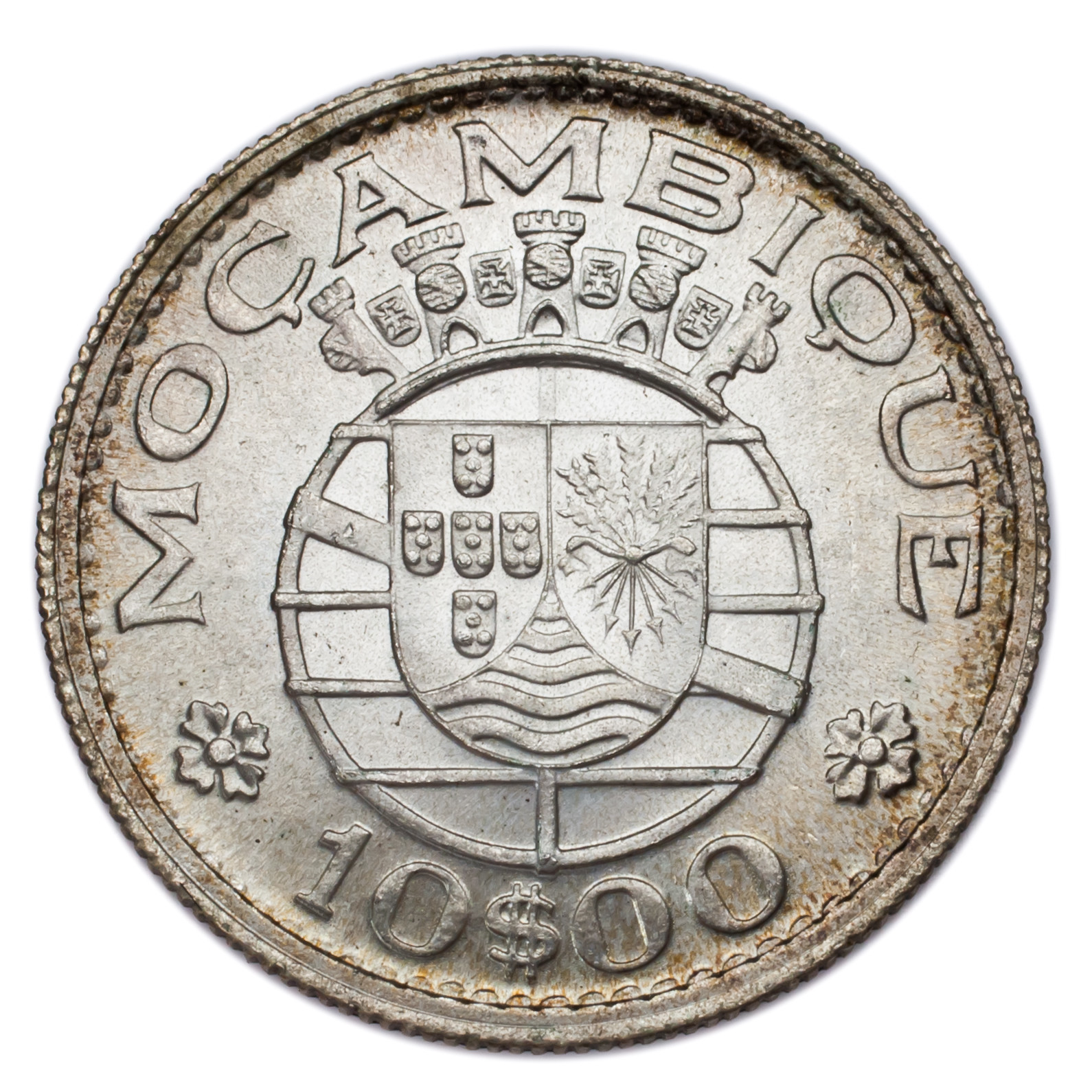 1942-1960 MOZAMBIQUE COIN LOT DI 3, 10C, 50C, 10 ESCUDOS (XF, AU BU CONDIZIONI)