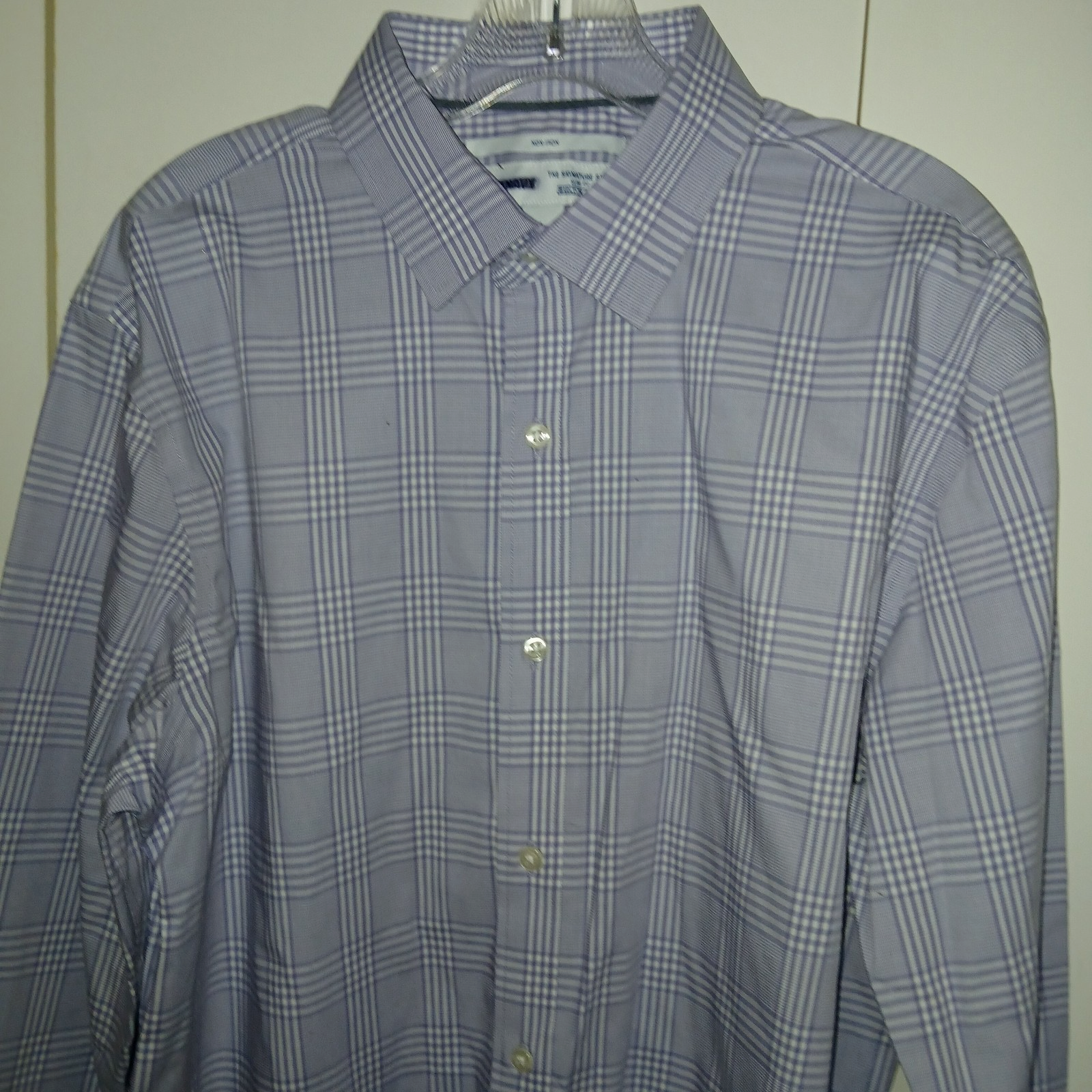 THIS IS A GREAT MEN'S OLD NAVY NON-IRON, SLIM FIT SIGNATURE LONG-SLEEVED SHIRT IN A SIZE LARGE. IT IS IN EXCELLENT, BARELY WORN, CONDITION.
