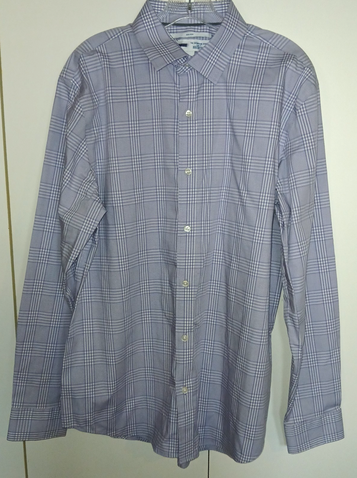 OLD NAVY THE SIGNATURE SHIRT SLIM FIT MENS LS MUTED PURPLE PLAID SHIRT-L-WORN 1